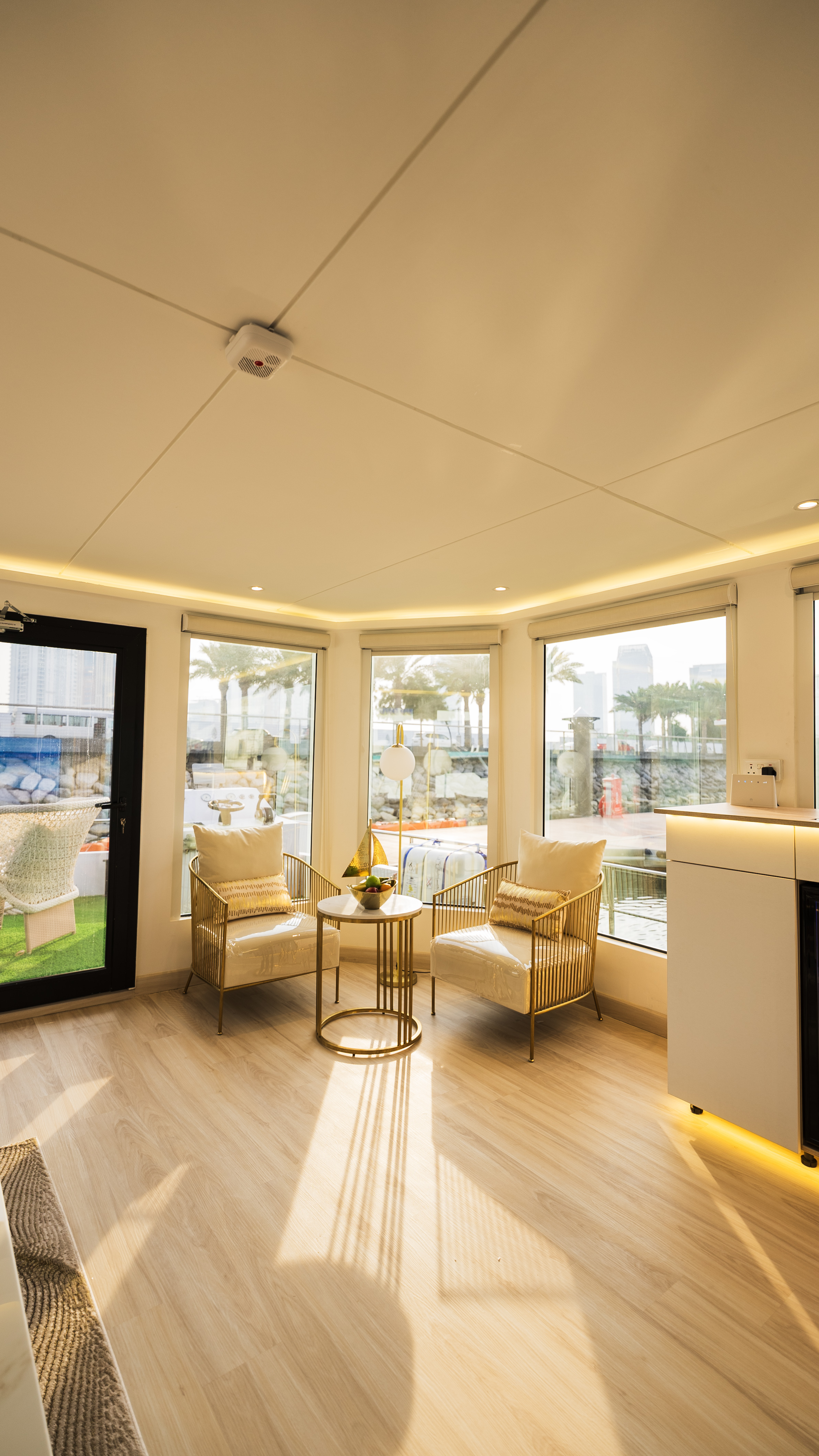 Capacity: Up to 5 guests.Features: Spacious Hall / Terrace / bedroom / Bathroom.Utilities: Television / Coffee machine / Sound System / Microwave / Refrigerator / Ice-Machine / Electric Kettle