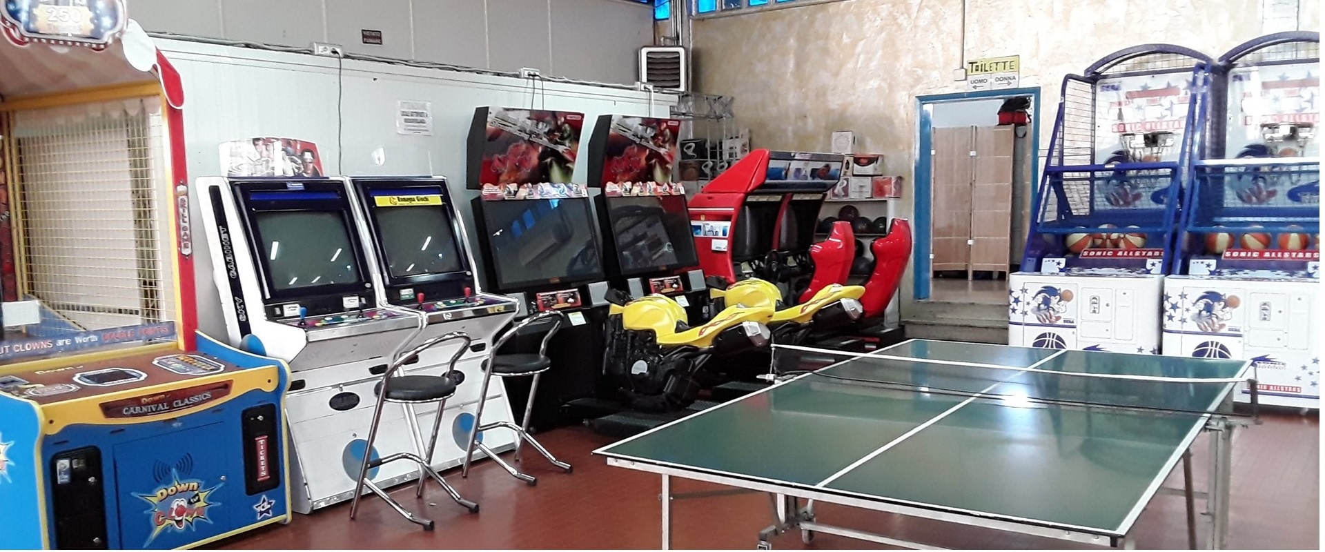 Sport e Divertimento, 8 piste da bowling sintetiche, Sala con giochi a premi, Guide e simulatori, Ballerine ITG e Pump It Up, Calciobalilla, Ping Pong, Bar, primi piatti, panini, Feste e compleanni.Galeria