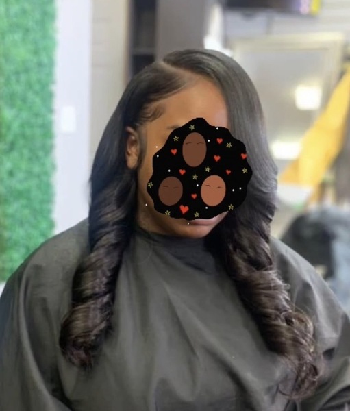 Portion of natural hair left out. Does lot include wash.