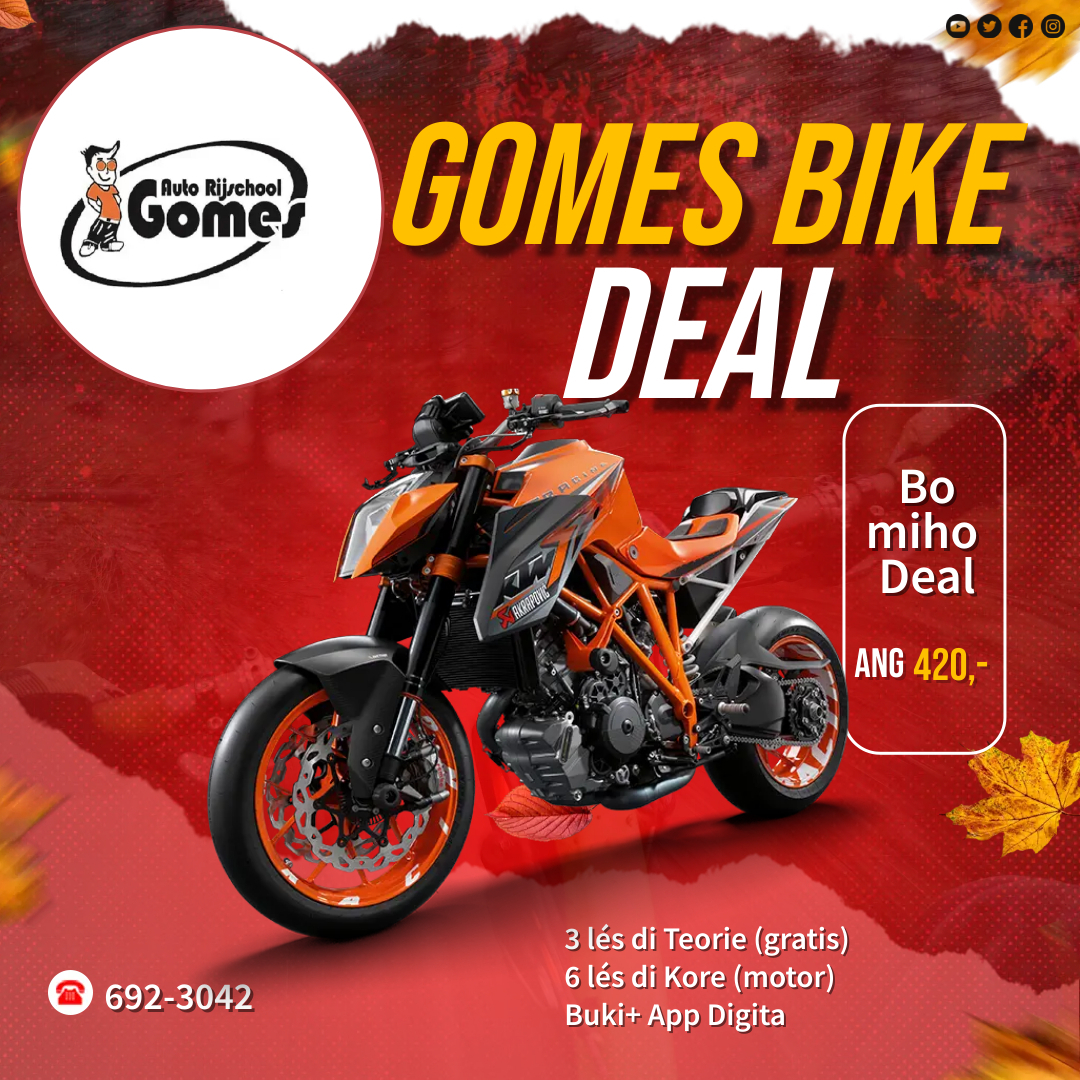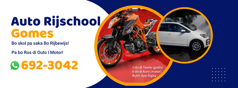 Auto Rijschool Gomes mas ku 42 aña di eksperenshá pa bo Siña stür bròmer I outo.Un tim di Instruktornan eksperenshá pa yudabo yega na bo reibeweis.(e servisio aki ta pa lès di teoria ; djaluna, djamars , djaweps i Di