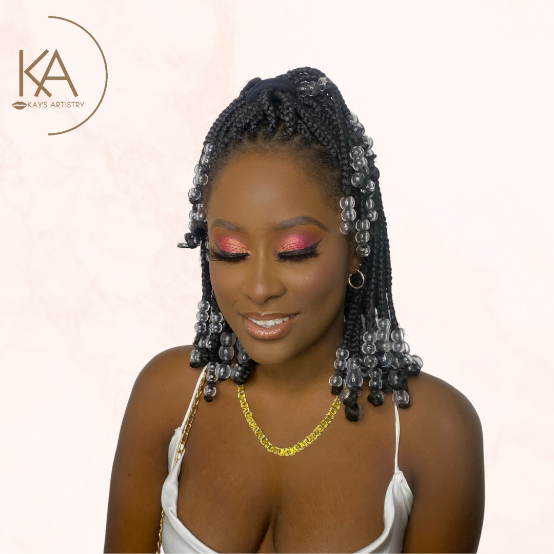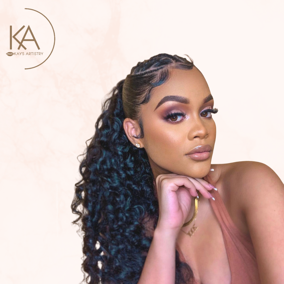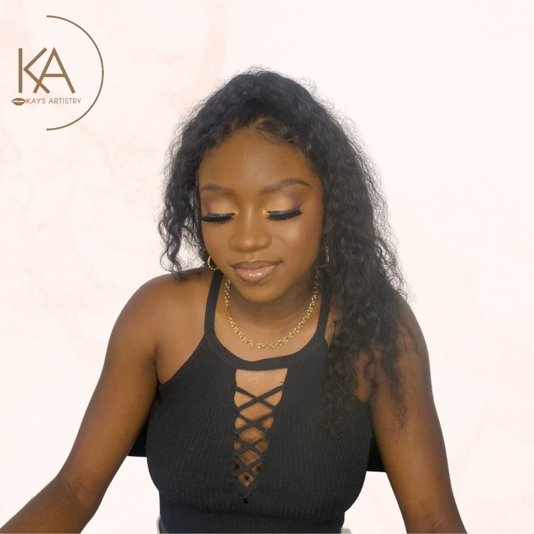 - Full Coverage Base - Glam Eyes (Glitter / Color) - Wing / Graphic Liner (Optional) - Tearduct Highlight - Mink Lashes - Lipgloss / Lipstick