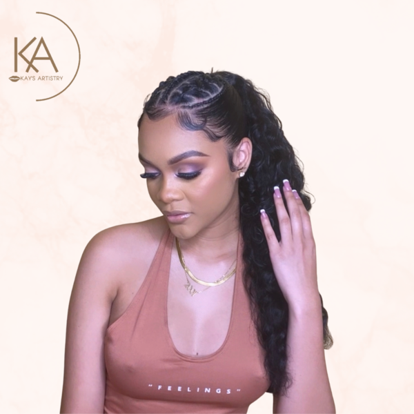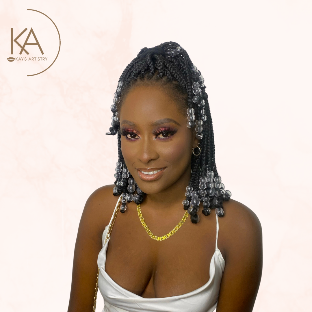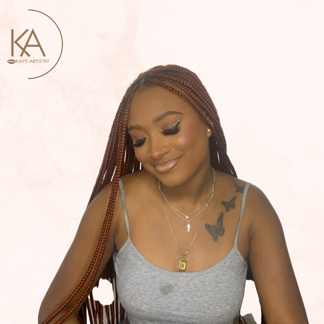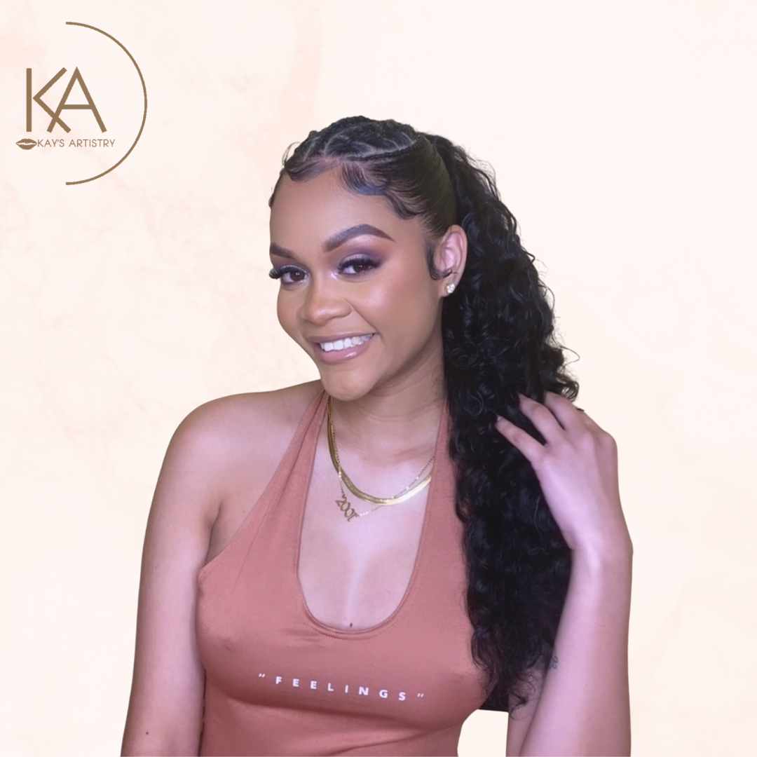 - Full Coverage Base - Glam Eyes (Glitter / Color) - Wing / Graphic Liner (Optional) - Tearduct Highlight - Mink Lashes - Lipgloss / Lipstick