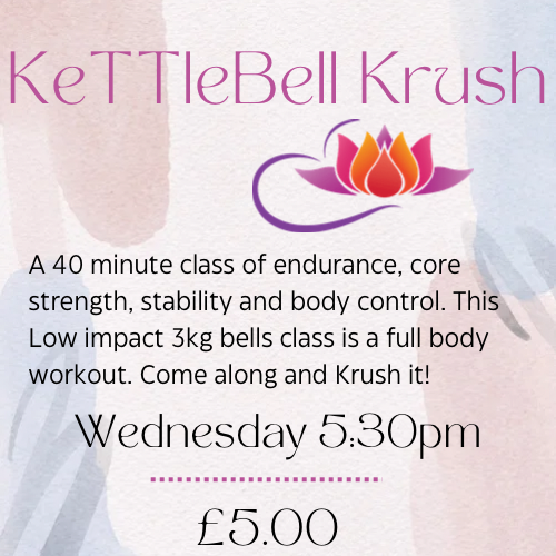 Improve your flexibility and endurance with low impact Yoga and Kettlebell class. Utilizing a 3 or 4kg Kettlebell with power yoga flows, this is a full body workout. Just bring some water and a mat! (Kettlebells supplied)