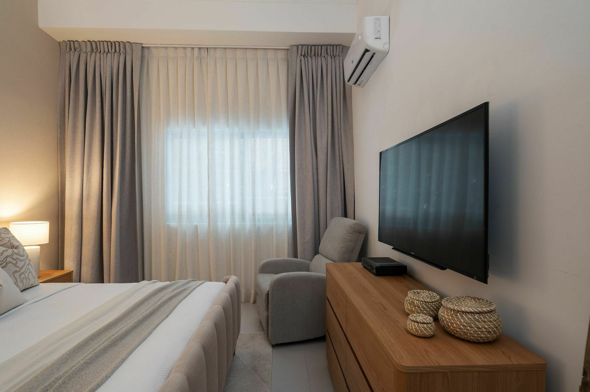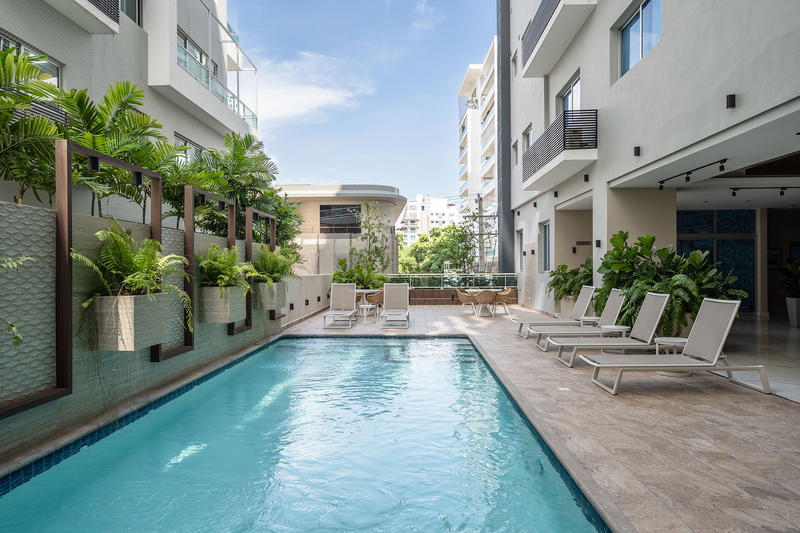 Dr. Manelic Mejia Clinic offers a seamless and convenient apartment rental service for patients traveling to the Dominican Republic for their medical procedures. These fully-furnished apartments are strategically located within walking distance of Nudah Clinic, where Dr. Mejia performs surgeries and consultations, providing patients with easy access to their healthcare needs. Furthermore, the apartments are just steps away from Vocé, where patients receive essential post-operative therapy and care. Beyond its medical proximity, the apartments are nestled in a vibrant neighborhood surrounded by various dining options, shopping centers, beauty salon, pharmacy, and a supermarket, ensuring that patients have everything they need within reach during their recovery period. The minimum stay for these comfortable accommodations is 14 days, offering patients a reassuring sense of stability during their medical journey.Fully firnished 1 bedroom apaertment. 1 Queen bed 1 Master bathroom 1 Guest Bathroom Living / Dining / Kitchen Area Laundry Area with washer / dryer / iron Smart TV en Habitación y Sala 2 Parking Spaces Air conditioning in bedroom and living/dining room area The building includes a social area with indoor swimming pool, bar, kid's play area and gym. Maximum capacity: 3 guestsGaleria