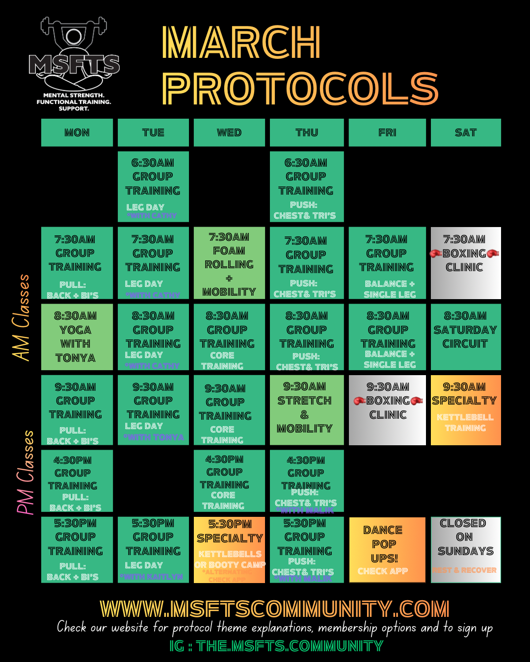 *Team led by Kaylin AND Kaitlyn!Booty & Leg Work! Lots of Banded work, tons of Bridges, thrusters, and kicks! And of course fun! $30 investment per class (nonmember)