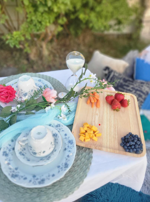Introducing our Premium Date Night In Package, outdoor experience for you and your sweetheart. Our all-inclusive service offers a seamless picnic setup. We provide comfortable seating and stylish decor. A small charcuterie board, sparklin