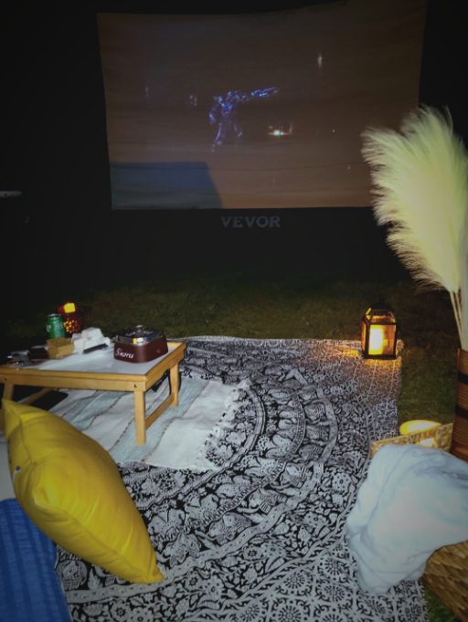 Host your very own backyard movie night out! This package includes14 ft inflatable screen Projector Large speaker 1 concession rental of choice!