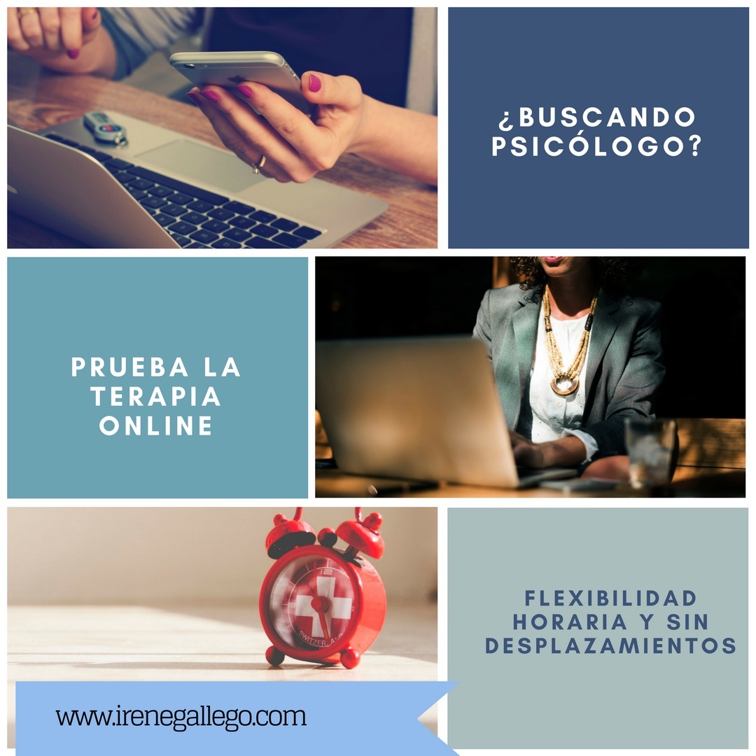 Bienvenido. Has accedido a nuestro área de consultas de psicología online.Si quieres mantener una consulta gratuita para probar el funcionamiento de la terapia online, reserva una sesión de bienvenida.Si lo que quieres es iniciar tu terapia, reserva una sesión online, seleccionando tu día y hora según tu disponibilidad y preferencia.Te explicamos el proceso de reserva en línea: 1) Pincha en "Reservar".2) Selecciona tu día y hora entre los que te aparecen disponibles para llevar a cabo la sesión. Nuestro programa se ajusta a tu zona horaria al hacer la reserva. (En el caso de que los horarios ofrecidos no se ajusten a tu disponibilidad puedes enviar un email a irenegallegocuenca@gmail.com y juntos buscaremos opciones compatibles).3) Completa el formulario con tus datos y no olvides poner tu Skype para que podamos contactar contigo. (Si aún no tienes una cuenta Skype, puedes crearte una de forma gratuita descargandote su app o en su web https://www.skype.com/es/new/ )4) Elige como pagar tu sesión: Paypal te dará opción de pagar con tu cuenta Paypal si la tienes o pagar con tarjeta. Previa petición por email admitimos pago por transferencia bancaria.5) Recuerda conectarte a Skype el día y hora de tu reserva. Recibirás un correo electrónico previo como recordatorio.6) Espera nuestra llamada.Puedes contactar con nosotros en: Skype / Email: irenegallegocuenca@gmail.comTeléfonos: +34 644 43 59 41 +34 679 89 92 22Si vives en Madrid o en la sierra norte y prefieres que la consulta sea presencial, puedes llamarnos ó solicitar cita previa en : https://www.doctoralia.es/irene-gallego-cuenca/psicologo/madridPara saber más sobre Psicología Miraflores o Irene Gallego puedes dirigirte a: http://www.psicologiamiraflores.com/Galeria