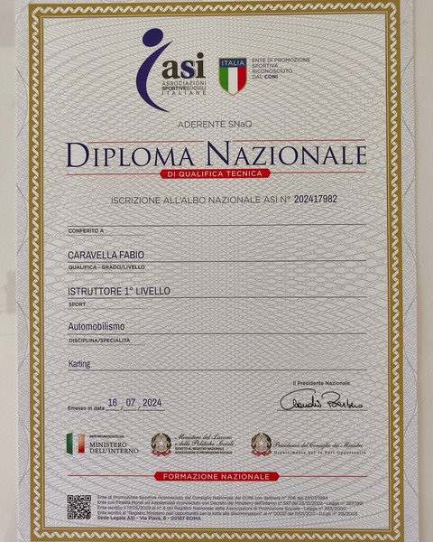 Imparerai le basi di guida su kart rental seguito da Fabio Caravella, 3 volte campione nazionale e istruttore certificato ASI Automobilismo. Al termine del corso sarai pronto per l’esame Finale e il Diploma