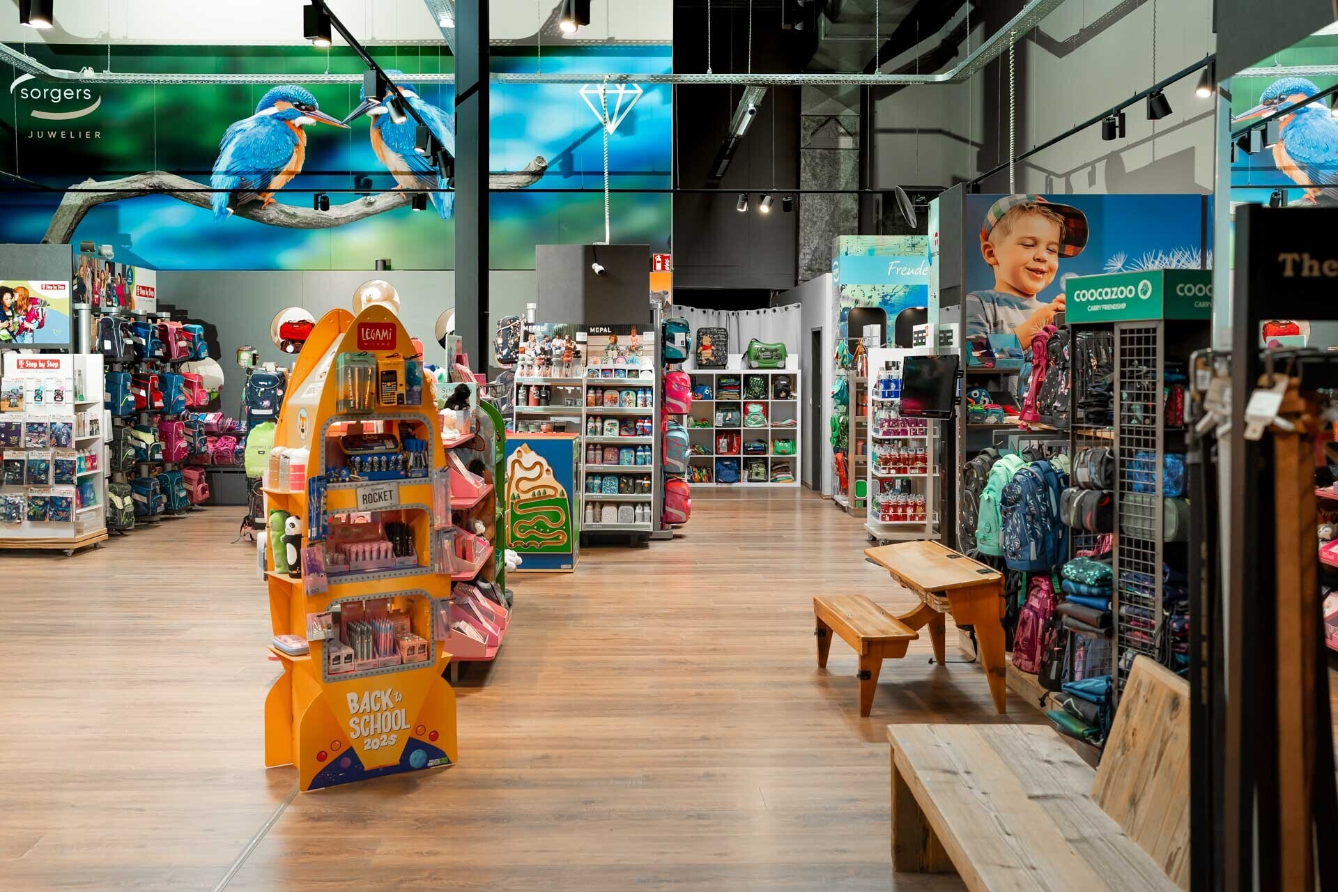 sorgers ist ein innovatives Unternehmen aus Mülheim-Kärlich, das sich in die Unternehmensbereiche sorgers Juwelier und sorgers Lederwaren gliedert.Juwelier sorgers: Hier findest du exklusive Eheringe aus Gold, Platin und Silber sowie moderne Materialien wie Carbon oder Tantal. Außerdem bieten wir ein umfangreiches Sortiment an Verlobungsringen, Solitärringen und hochwertigem Schmuck aus feinsten Edelmetallen. Armbanduhren und Kinderuhren gehören ebenfalls zu unserem Angebot. Wir bieten außerdem Serviceleistungen wie Goldschmiede-Reparaturen, Perlenservice und Batteriewechsel.sorgers Lederwaren: Hier sind wir nicht nur Schulranzen-Spezialisten, sondern auch Anbieter für modische Taschen und Accessoires, Reisegepäck und Businesstaschen. In unserer einzigartigen ca. 600 m² großen Schulranzen- und Fashion-Welt im Herzen des Gewerbeparks Mülheim-Kärlich erwartet dich ein Fachgeschäft mit einem kompetenten Team. Wir unterstützen dich qualifiziert bei der Auswahl des richtigen Schulranzens oder Schulrucksacks und geben wertvolle Tipps.Galeria