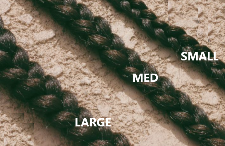 Please see homepage for an image of braids size chart.