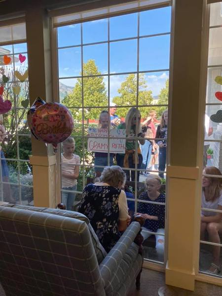 Visits through the front window for up to 40 minutes. An alexa speaker is available inside and outside so you can hear each other. Meet at the window by the front doors off 800 West. Wear a face mask.