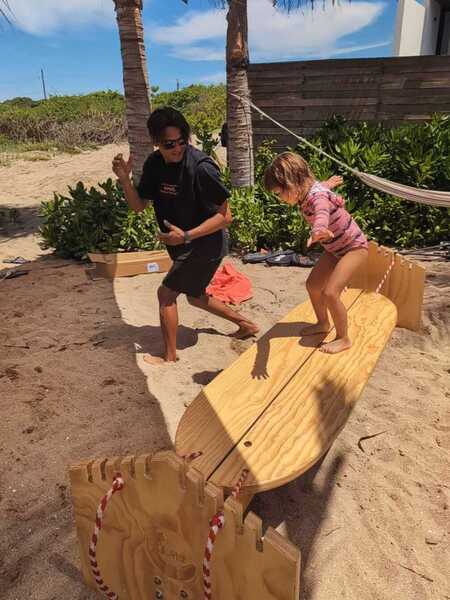The personalized lesson includes: Bilingual instruction (Spanish & English) Basic surf theory Balance practice on a wooden balance board Sport balance training In-water practice with a surfboard UV-protection rash guard Natural sunscreen by Su