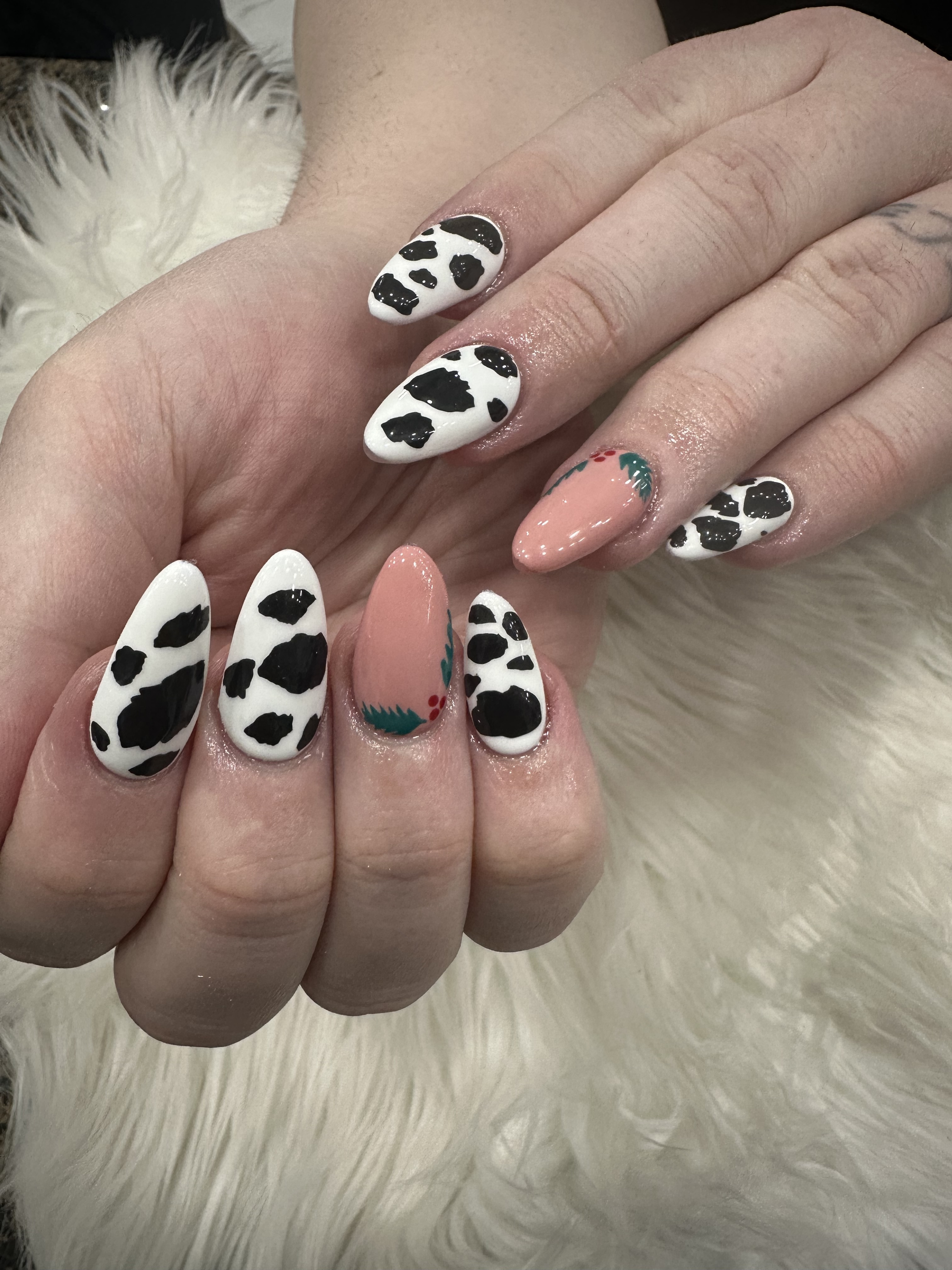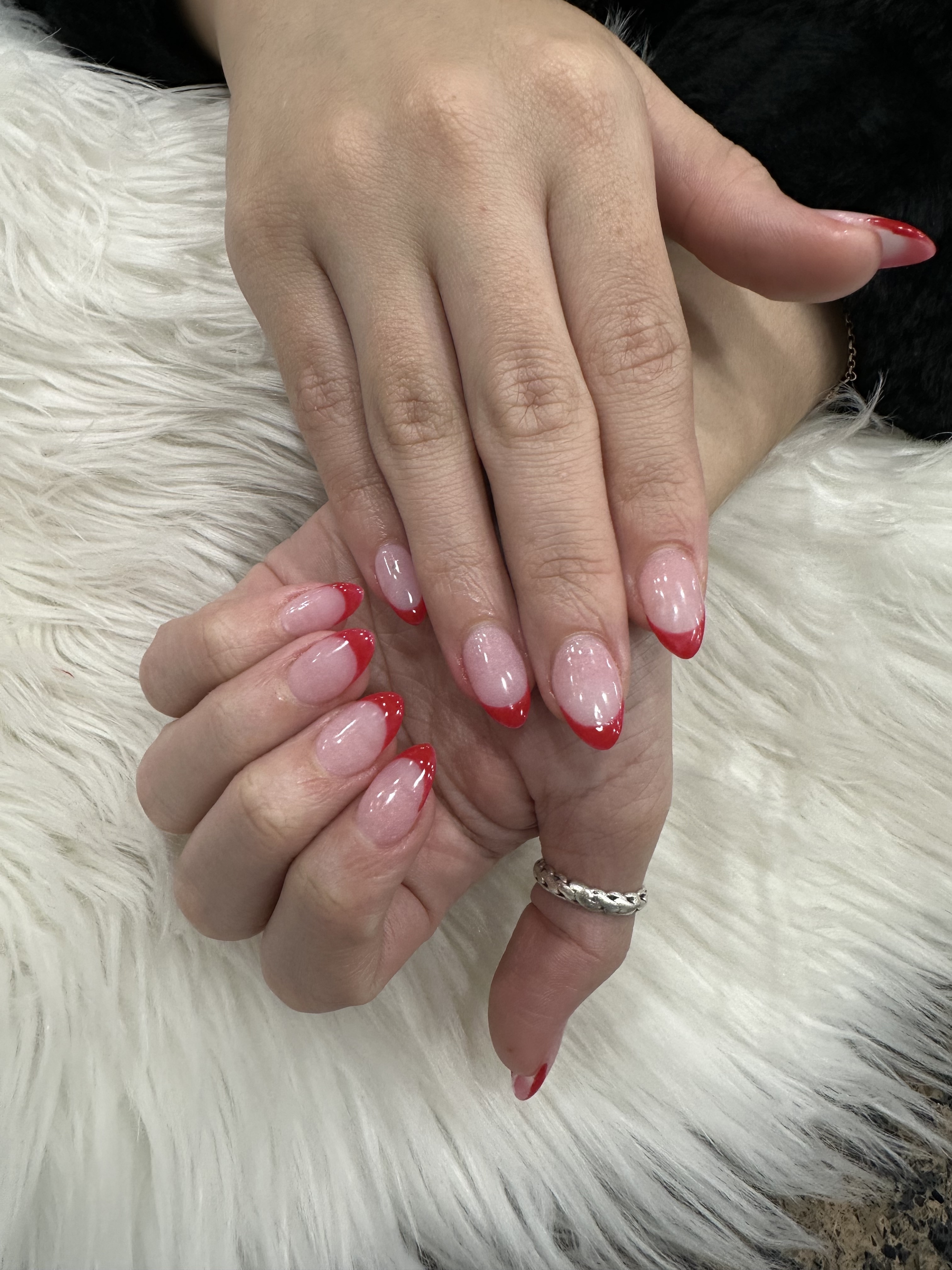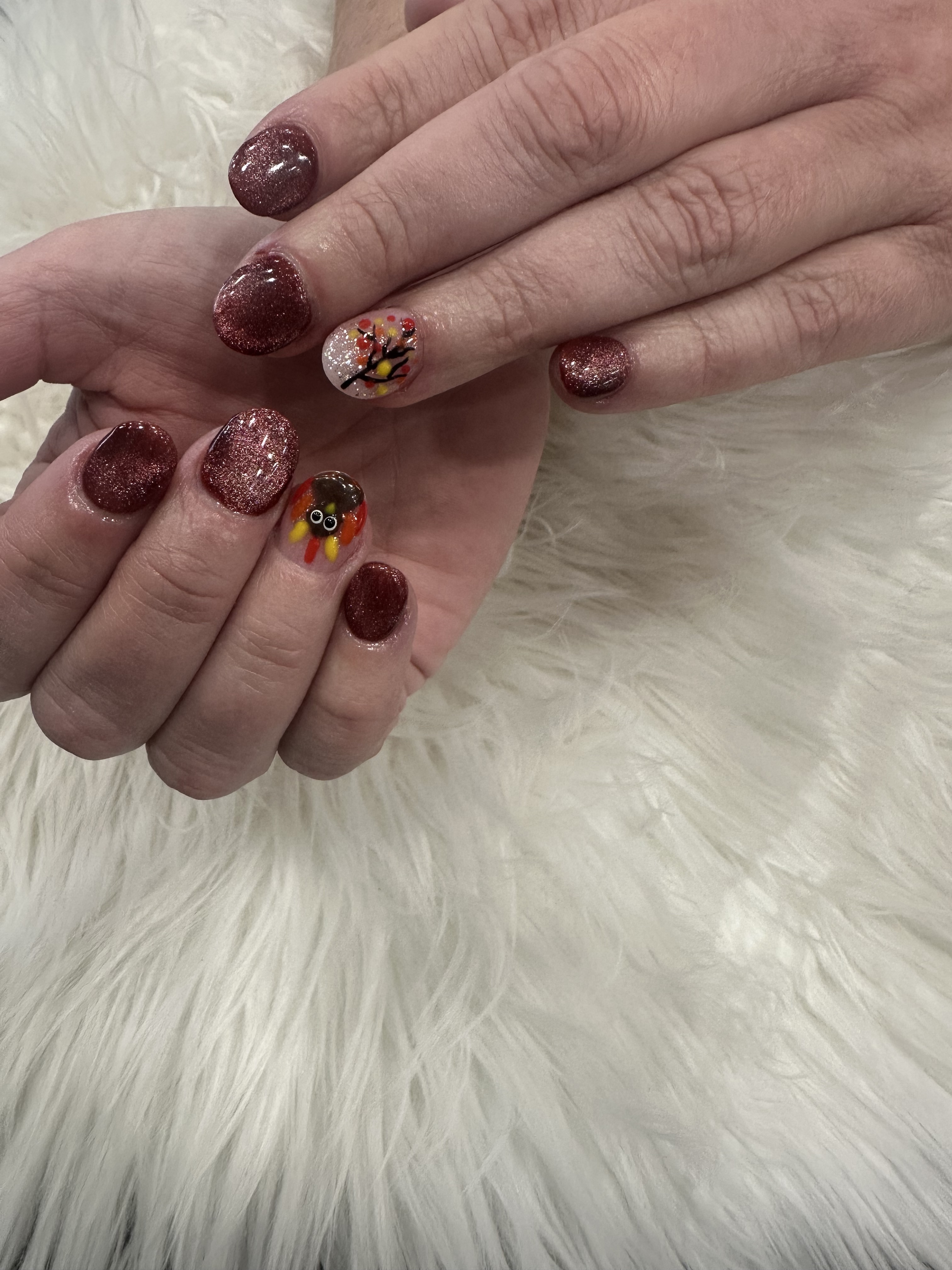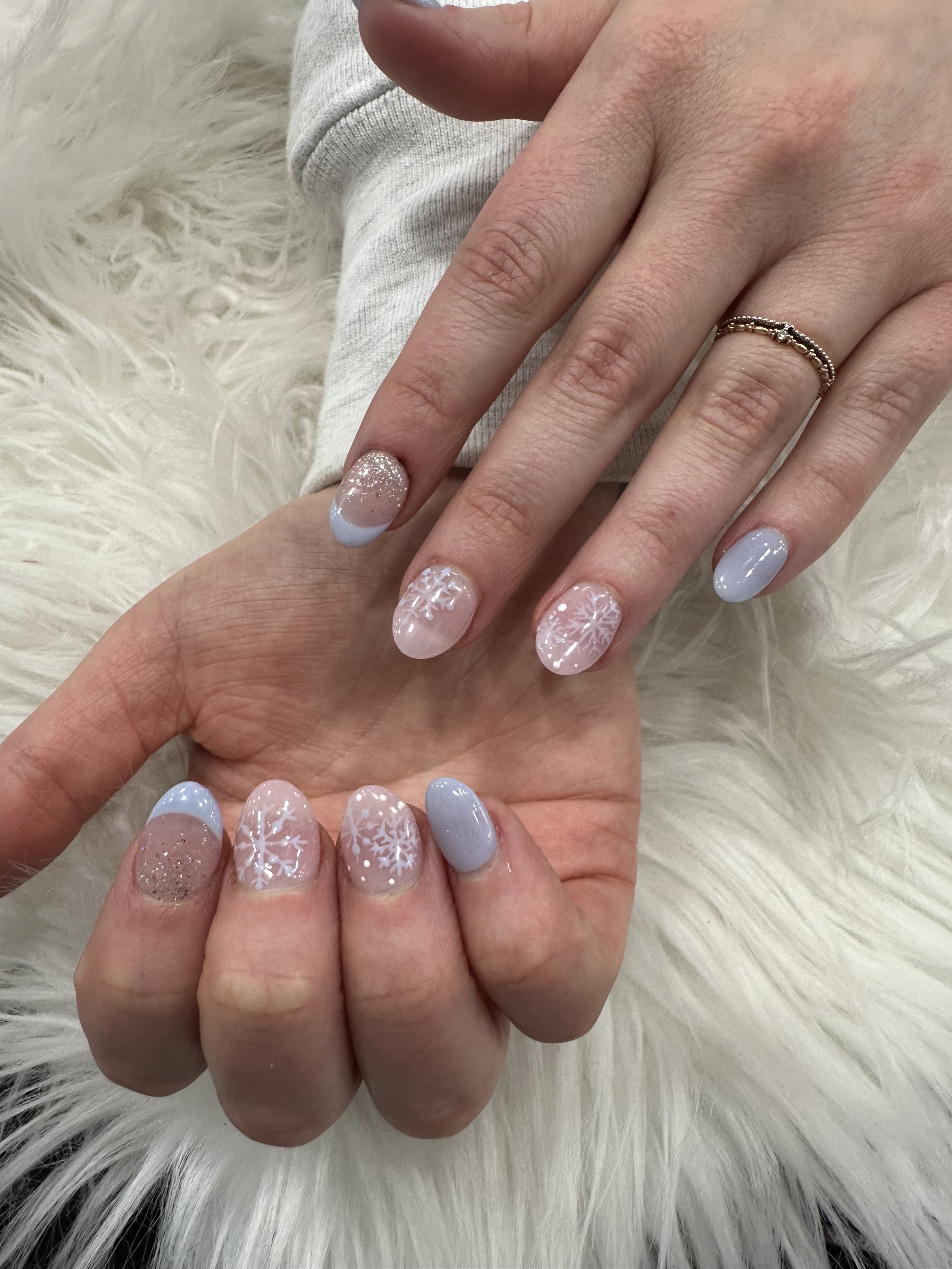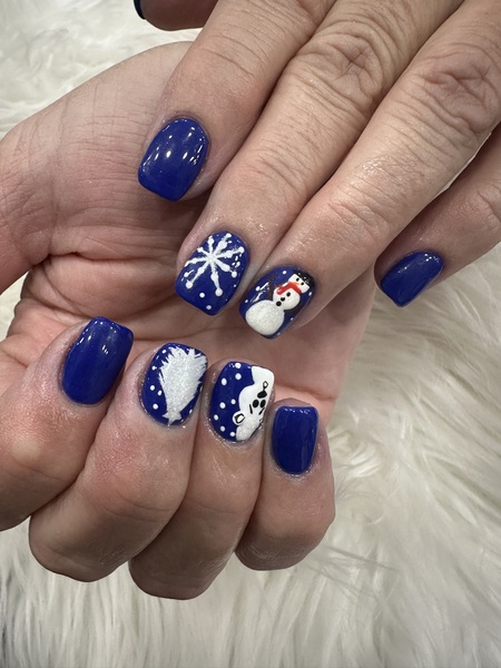 Gel on natural nail. Designs can be added on.