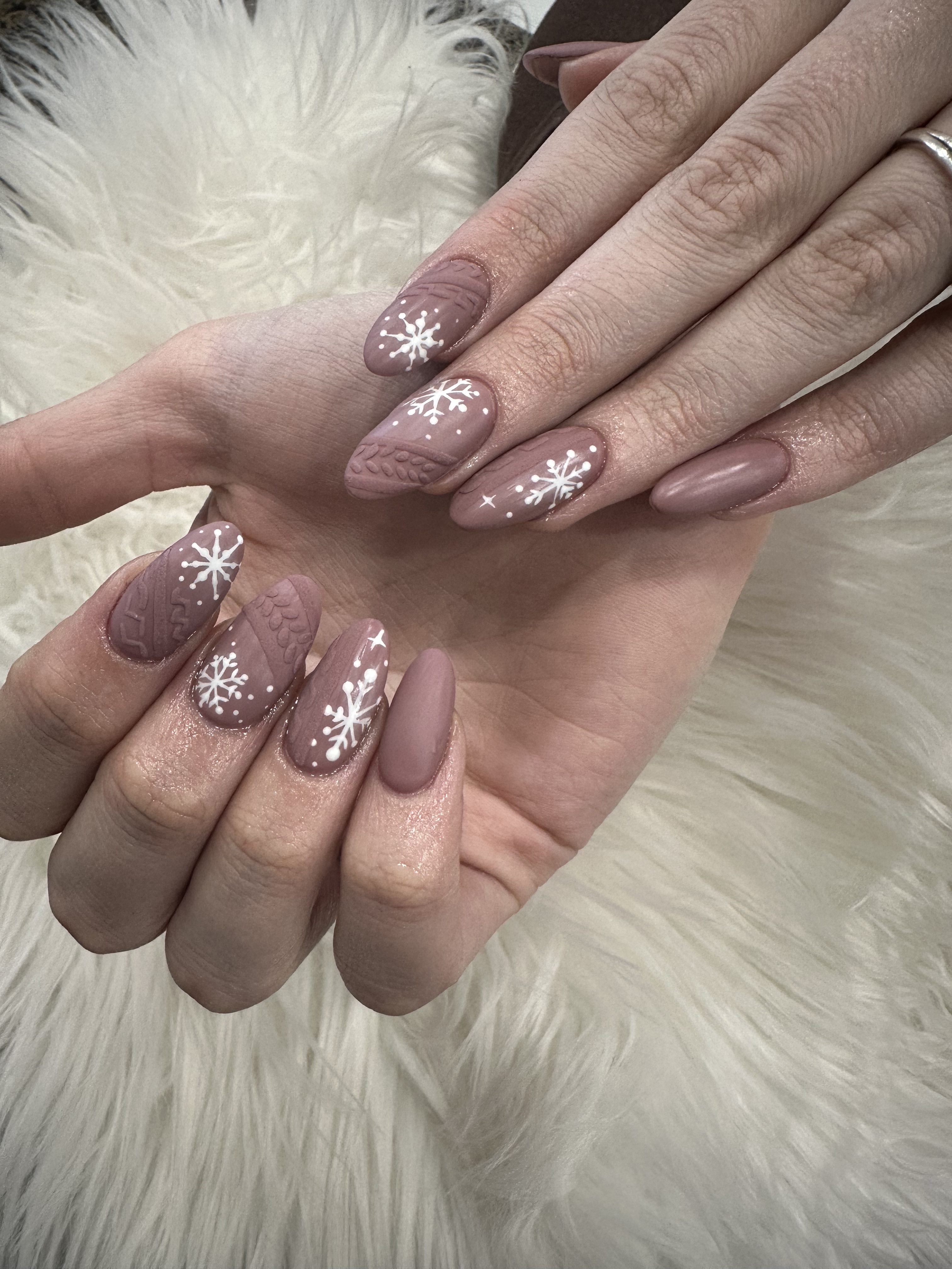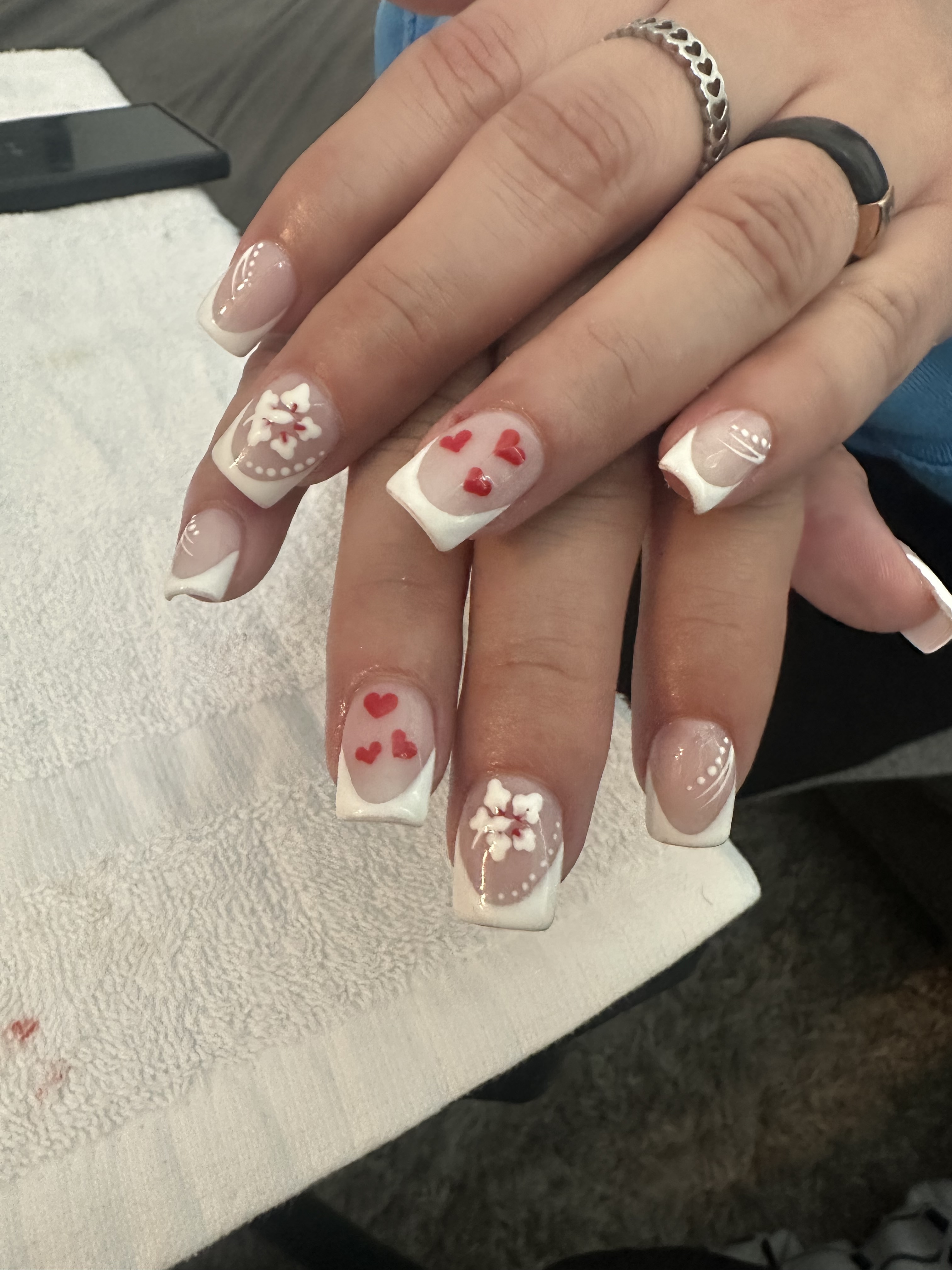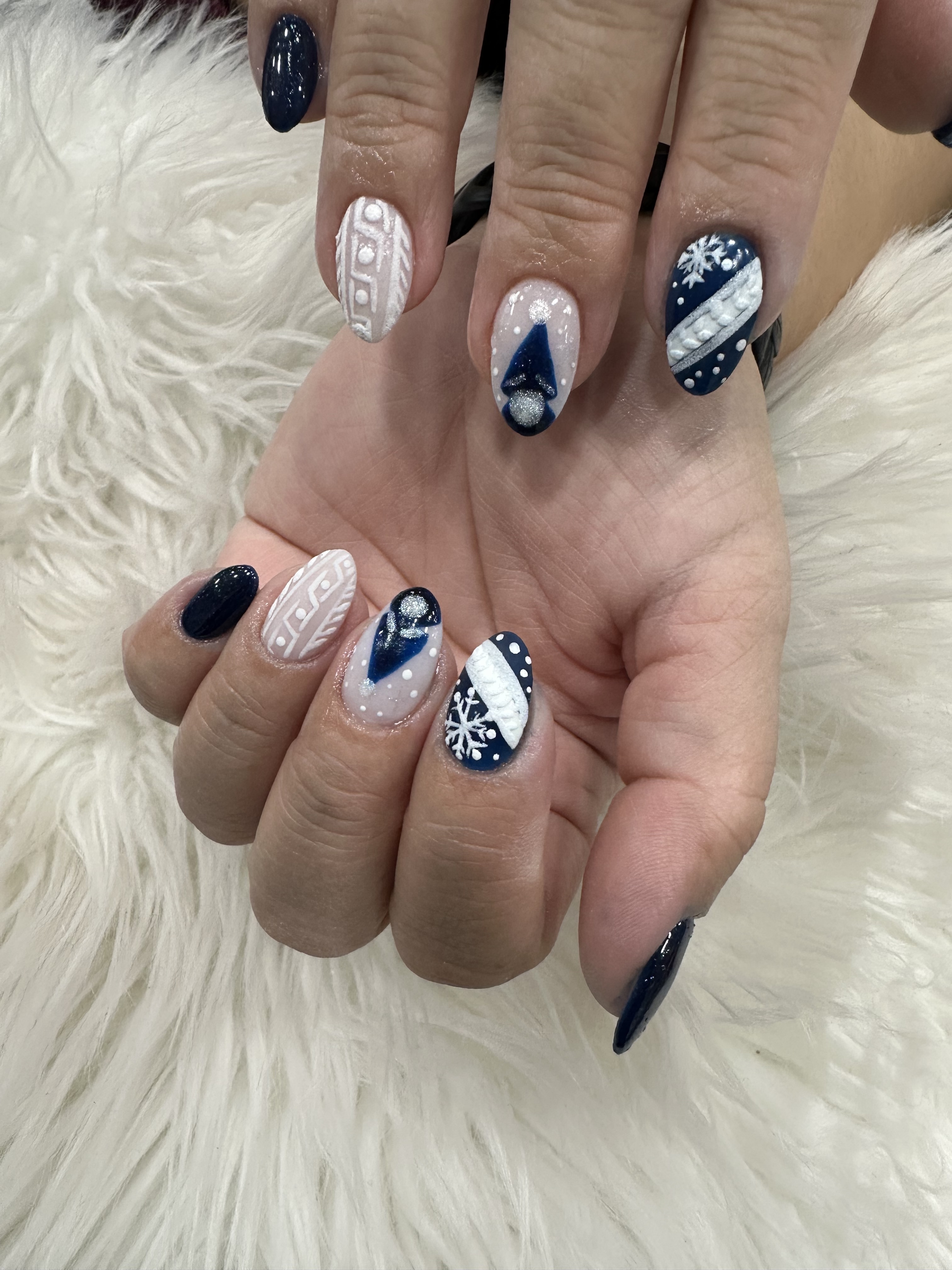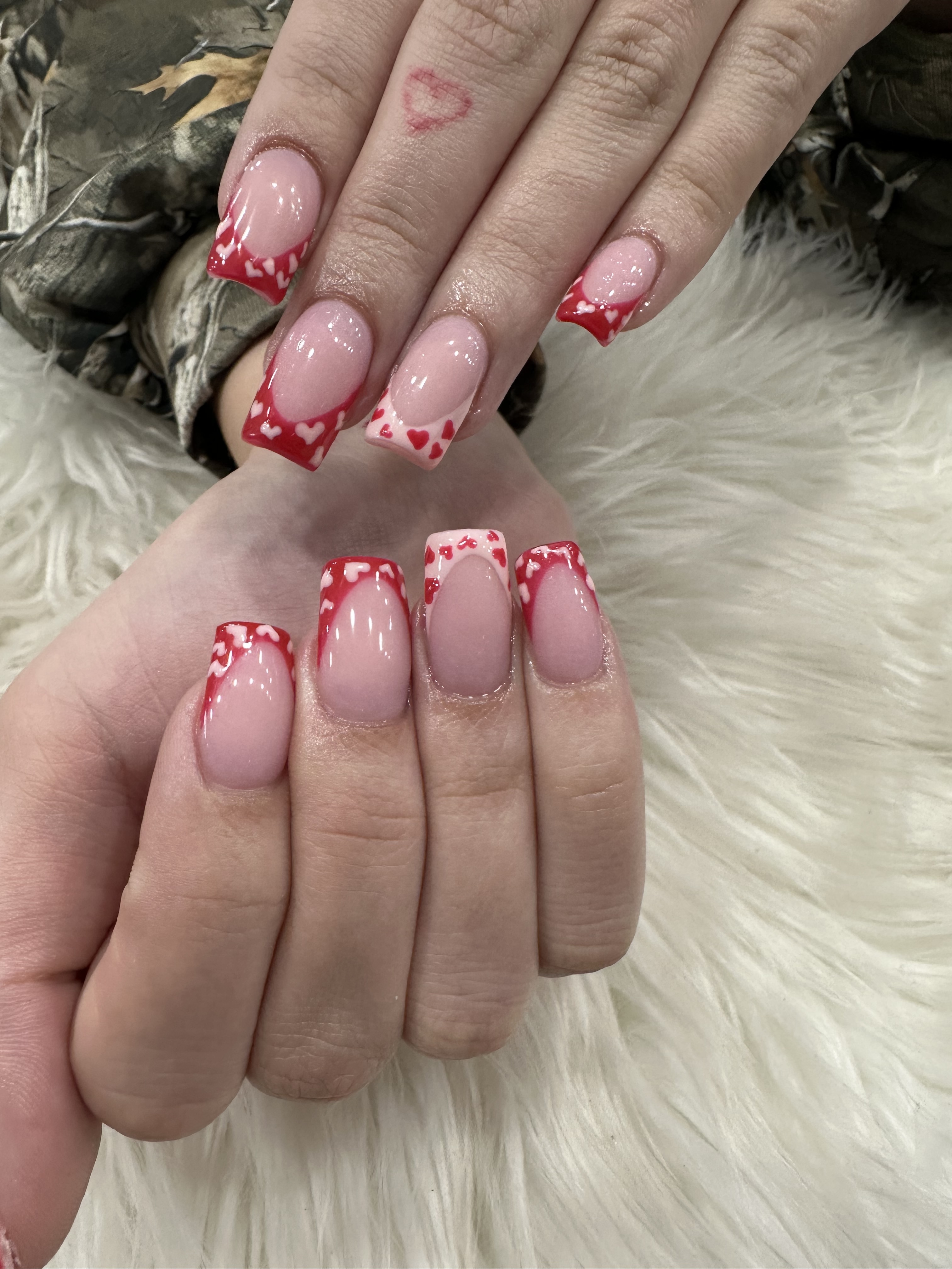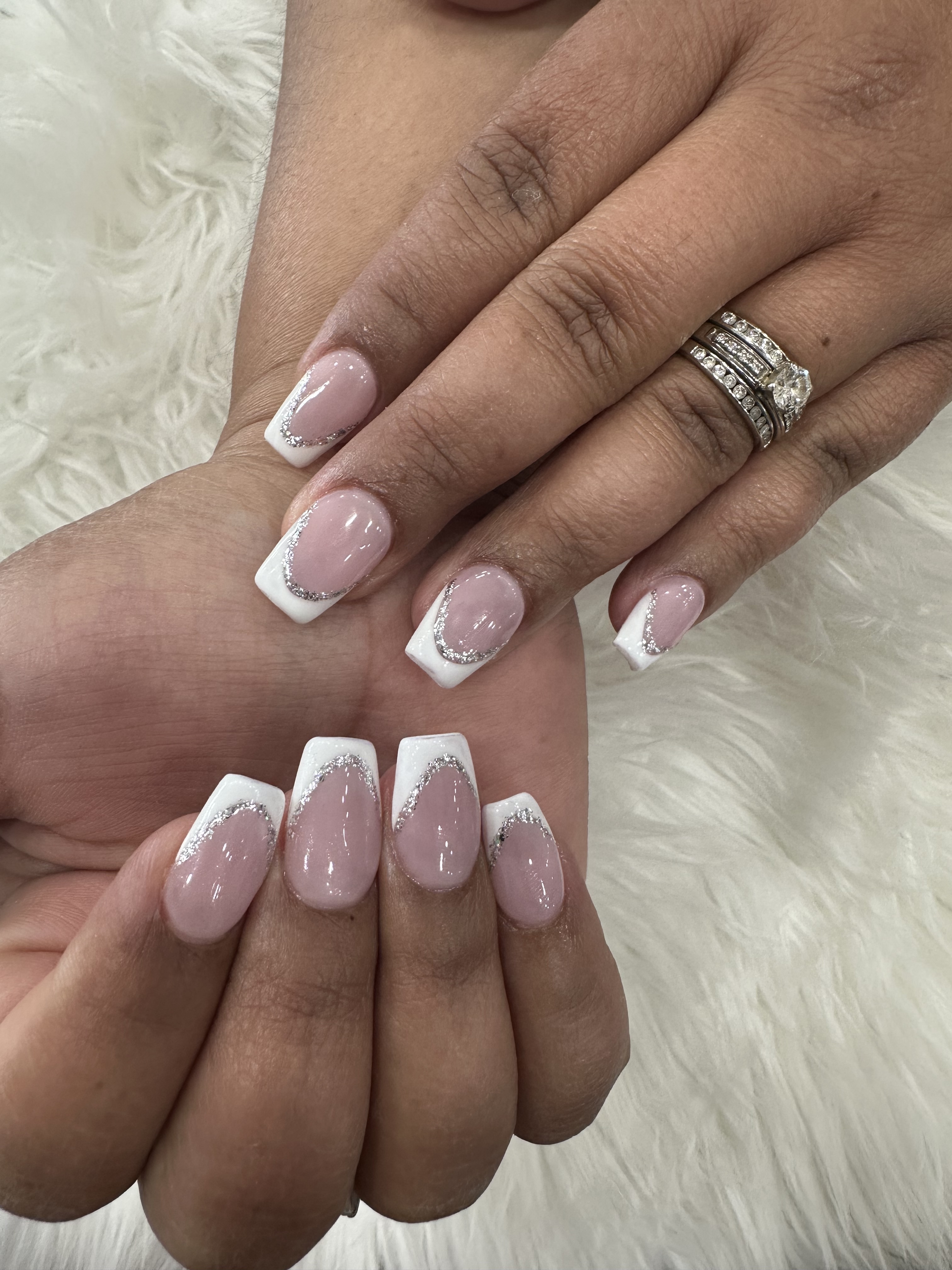 Gel on natural nail. Designs can be added on.