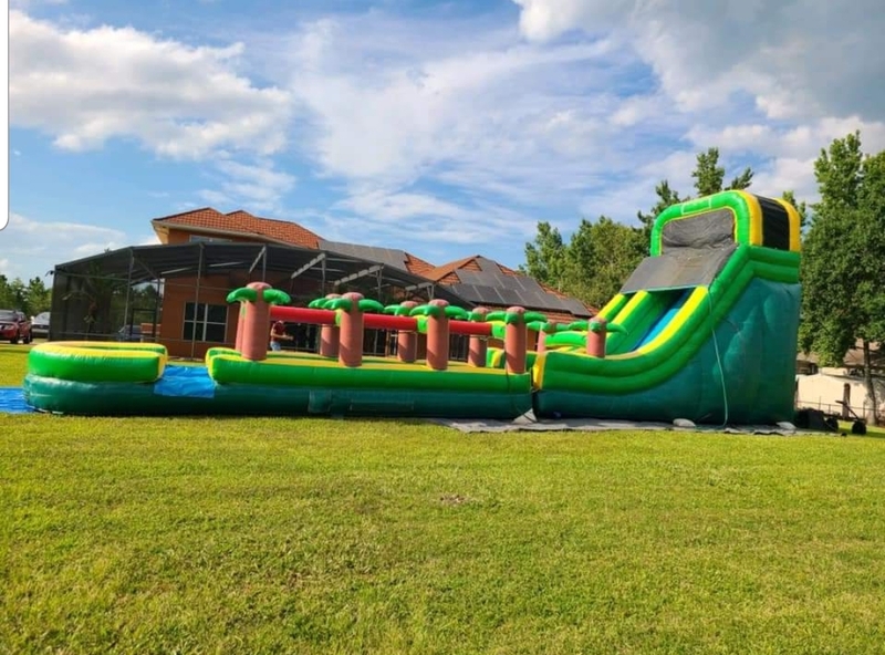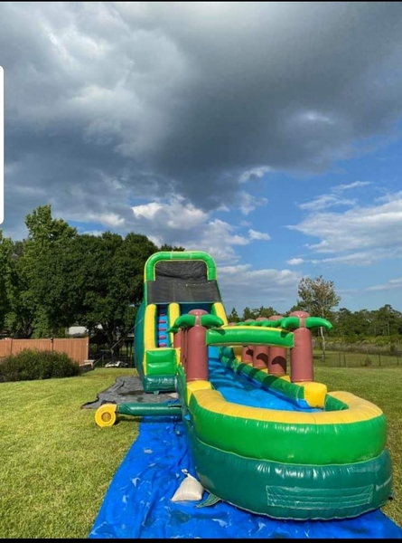 Rental of our 30ft Long Tropical Water Slip & Slide. Need one outlet at (110/15). $130.00 plus tax. Drop off done Friday afternoon after 5 or Saturday morning and pick up Sunday morning. Exceptions can be discussed. Please contact us for more det