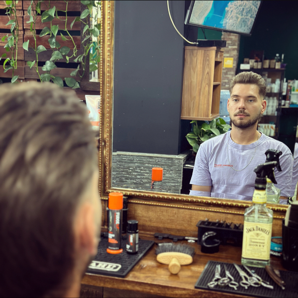 A quick clean up, which includes sides and back clippers cut with line up ( no scissors work involved) followed by a tailored beard grooming.