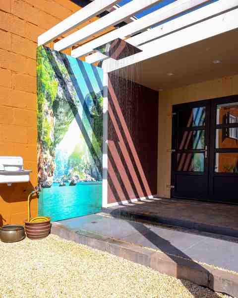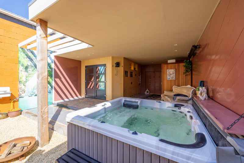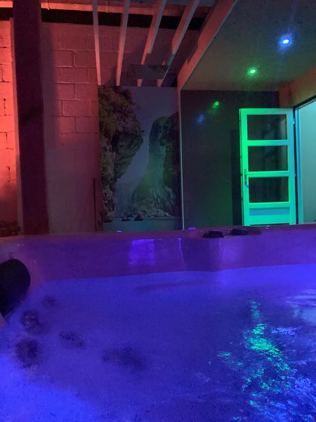Ruim 80m2 wellness helemaal privé! (Chloorvrij massage bad, infrarood sauna, infrarood paneel (outdoor-verwarming), buitendouche, zonneweide, rustkamer, wc, gratis koffie/thee, eigen koelkast en met toegang tot eigen muziek keuze)