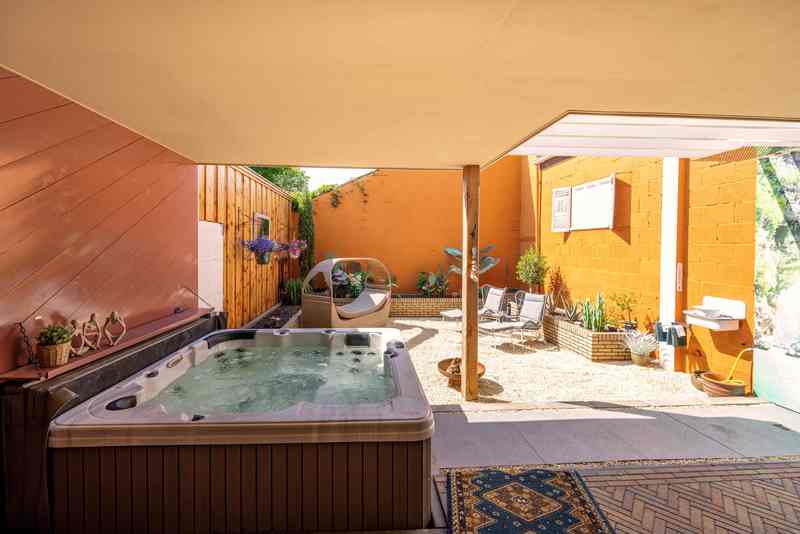 Welkom bij Privé Wellness Workum, waar u kunt genieten van een tuin wellness in een rustige en afgelegen omgeving in Workum. Volledig afgesloten van de buitenwereld, met een oppervlakte van ruim 80m2, kunt in onze privé spa genieten van uw eigen massage bad (op 40°C, merk: Silverspas), uw eigen infrarood sauna, buiten douche (koud) en zonneweide. Daarnaast mogen een slaapkamer en toilet niet ontbreken.Een koelkast is ook aanwezig, dus uw eigen eten en drinken meenemen is geen probleem. Uiteraard kunnen wij dit ook tegen een vergoeding voor u verzorgen. Kom bij ons ontspannen en genieten!Galeria