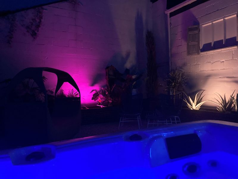 Ruim 80m2 wellness helemaal privé! (Chloorvrij massage bad, infrarood sauna, infrarood paneel (outdoor-verwarming), buitendouche, zonneweide, rustkamer, wc, gratis koffie/thee, eigen koelkast en met toegang tot eigen muziek k