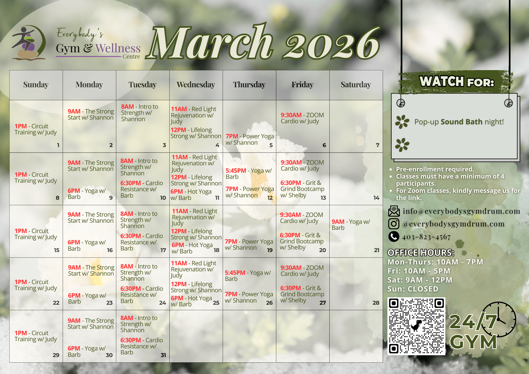 Everybody’s Gym and Wellness Centre in Drumheller offers 24/7 Gym access and services that cater to individuals of all levels. Join our group fitness classes for a dynamic and motivating workout experience or participate in wellness services designed to help you become your best self! We provide several bespoke services such as tanning, meditation, Infrared Saunas, Cold Plunge, Steam Shower, light therapy and overall wellness support. Additionally, you will find us utilizing our Medical Tourism accelerator through Retreats and Events. With our retro equipment and supportive community, we’re committed to helping you improve your physical and mental well-being.優惠&促銷