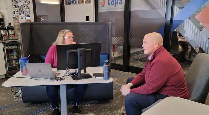 Our Huddle Room is the perfect space for a private meeting. Seats 3-4WhiteboardComputer Monitor