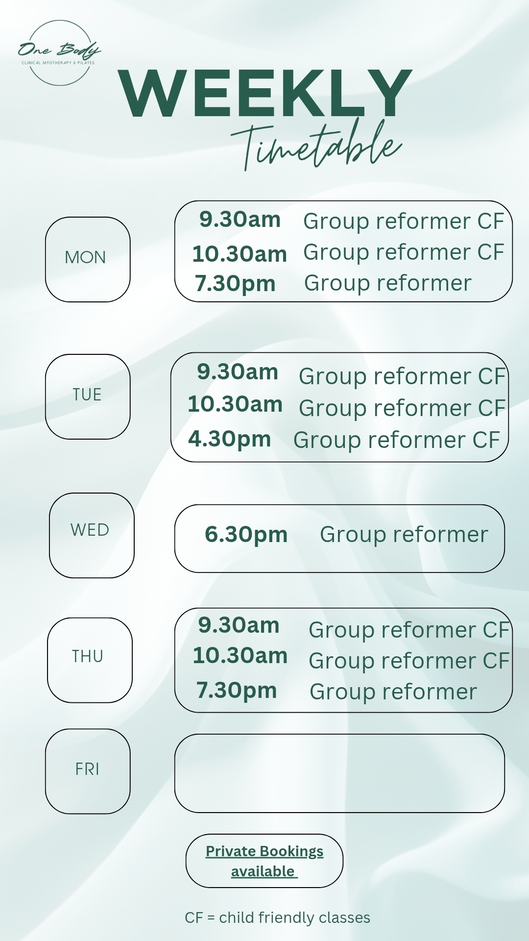 Small group reformer where you can bring your little one! If you find it hard to get your movement in because you have young kids then this class is for you! Everyone should have the opportunity to feel good especially mums. This class has a max