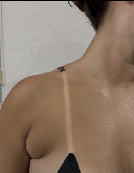 The tapping method is temporary, skin-safe, and removed immediately after tanning. This will give you those beautiful sharp tan lines. No UV!