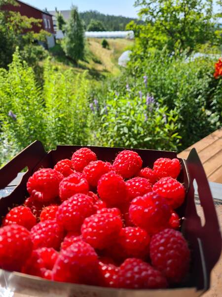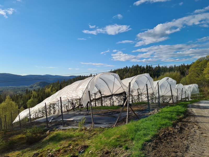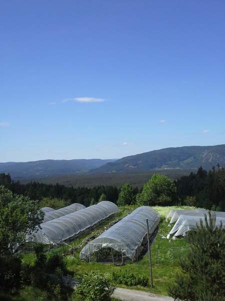 På Høgetveit gård dyrker vi moreller og bringebær. Bæra produseres under høye plasttunneler, som beskytter mot frost og regn, sprekking og råtning. Bruk av plasttunneler gjør at vi kan reduseres sprøytebehovet.Gallery