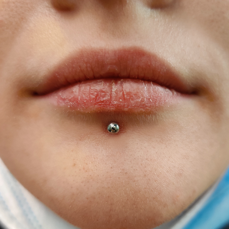 Piercing réalisé avec une prothèse (banane) en titane. Possibilité de le réaliser avec un bijou en vitrine à la place, stérilisation en 5 min.