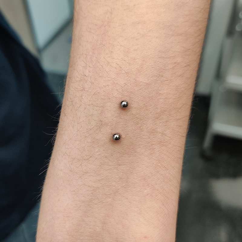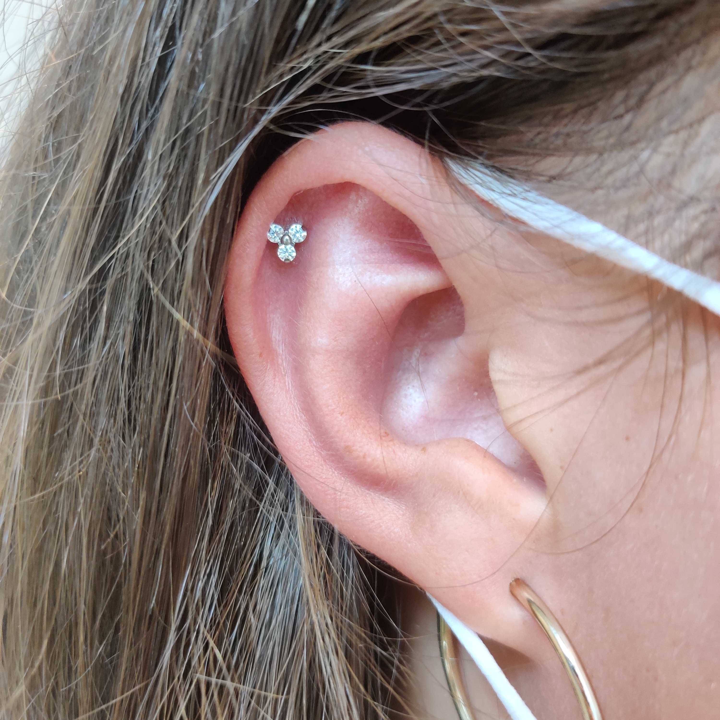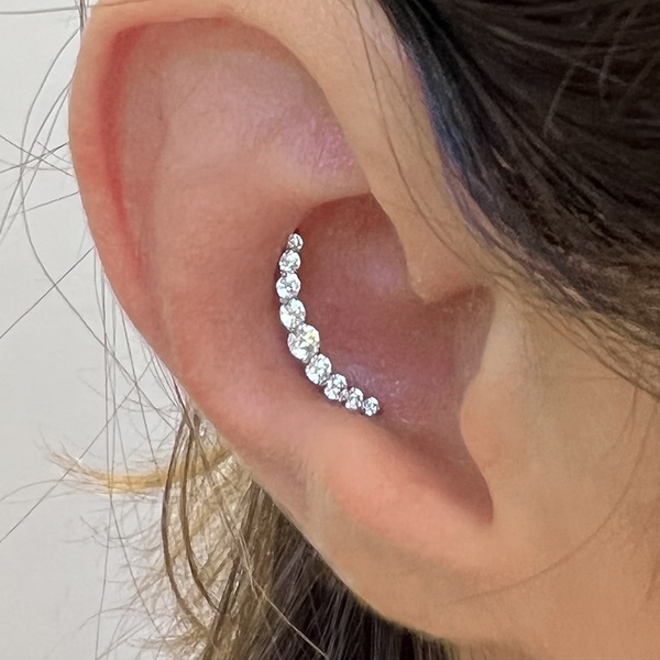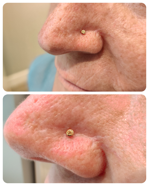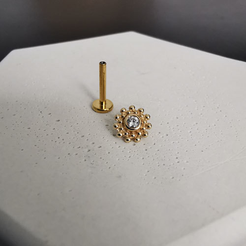 Piercing réalisé avec une prothèse en titane soit une bille, demi-bille ou un Strass (brillant)Possibilité de le réaliser avec un bijou en vitrine à la place, stérilisation en 5 min.