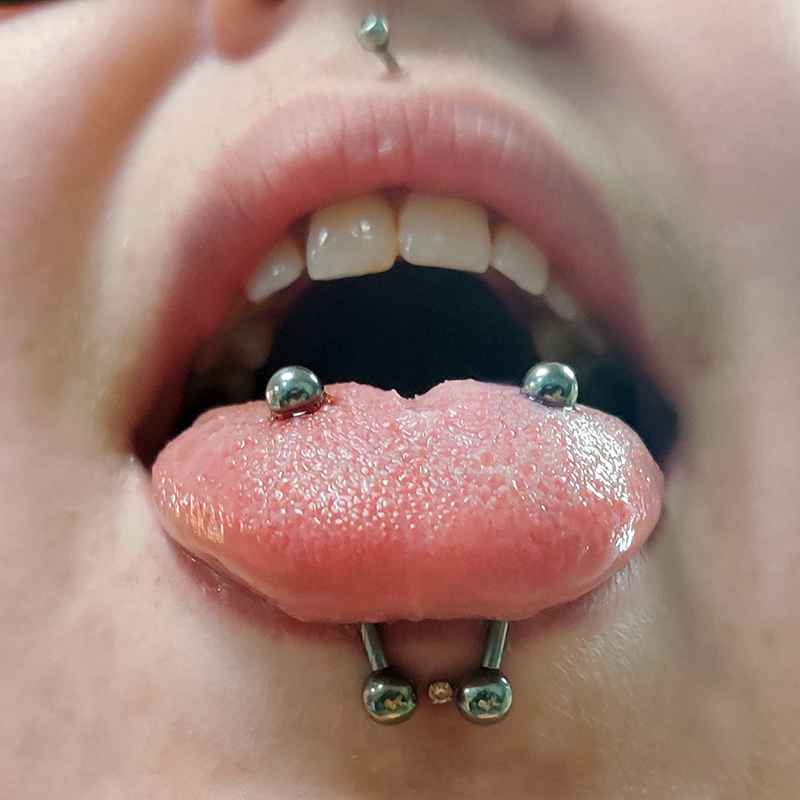 Piercing réalisé avec une prothèse en titane. Possibilité de le réaliser avec un bijou en vitrine à la place, stérilisation en 5 min. Stérilise également vos bijoux.