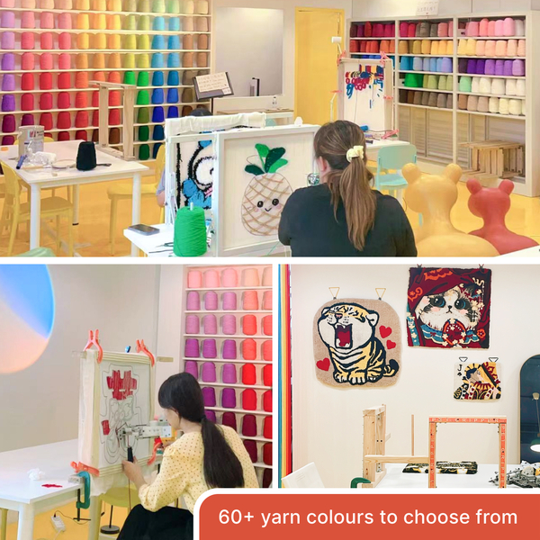 Please select the quantity of frames to proceed. Price include:Design feasibility consultation &Pre-tracing of designTutorials & guidance throughout the workshopPractical session to familiarise you with tufting gun usageTouch u