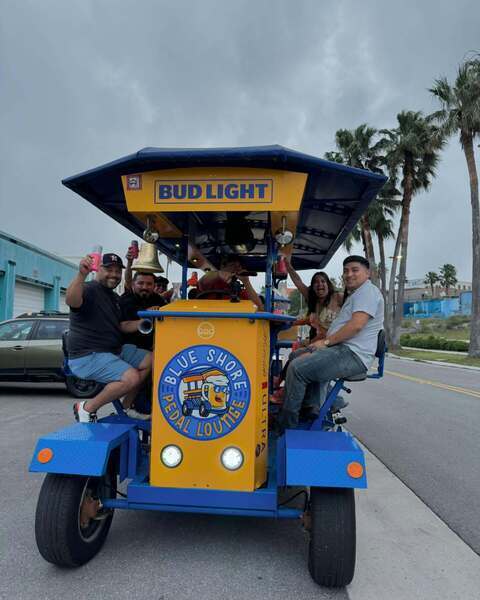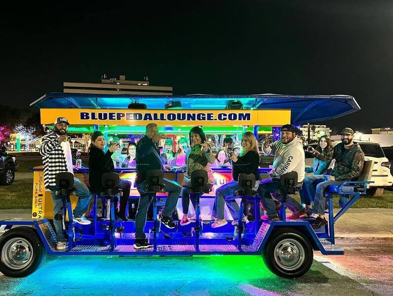 Blue Pedal Lounge is a pedal-powered party bike experience in Corpus Christi, Texas, offering fun, social tours for groups of up to 16 people. Guests can bring their own beer or wine, enjoy music, and cruise at a relaxed pace through scenic downtown and bayfront areas. Each tour is led by a designated driver, with pedal assistance from an electric motor, making it accessible for all fitness levels.The business caters to celebrations, sightseeing, and nightlife outings, creating a unique blend of entertainment, exercise, and socializing. Recognized locally for its creativity, Blue Pedal Lounge has been nominated for tourism and new business awards.Galeria