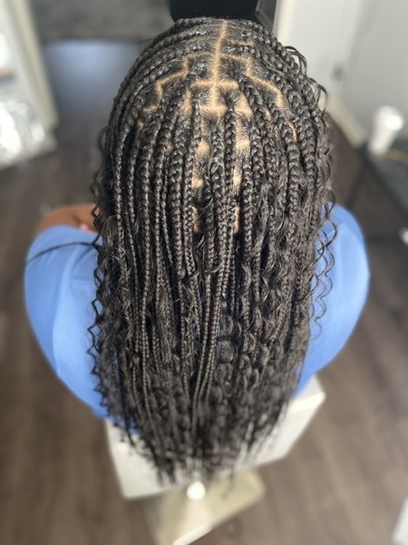 Medium knotless braids with human curly hair added