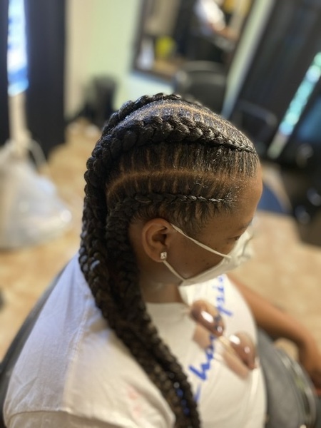 small feed in braids any style. Add ons for Color/Length/Curly hair