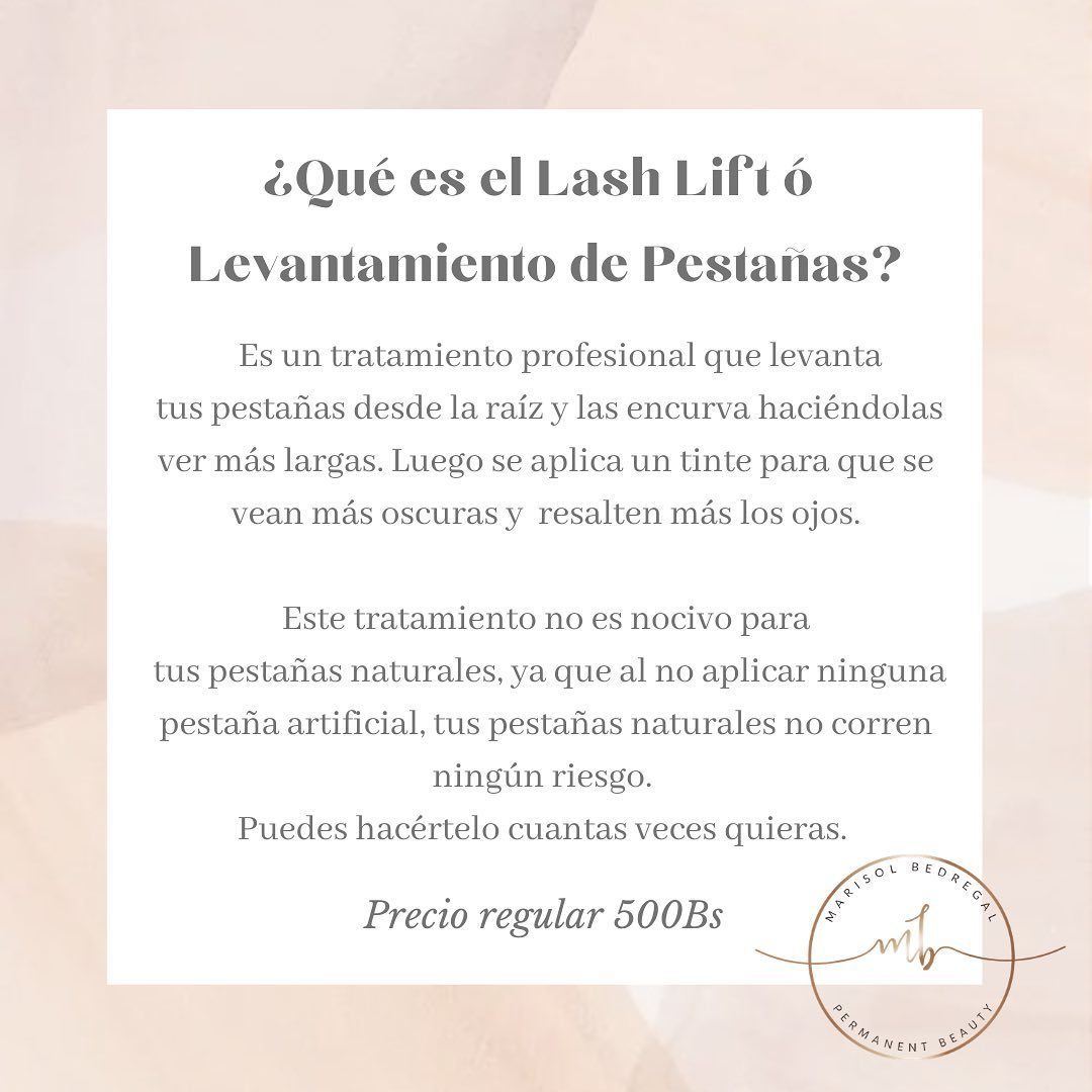 Consiste en doblar las pestañas desde la raíz para dar el efecto de levantadas al natural, incluye el colocado de henna para dar color e intensidad a la mirada y para finalizar una capa de vitaminas y keratina para fortalecerlas.éste procedimiento ti