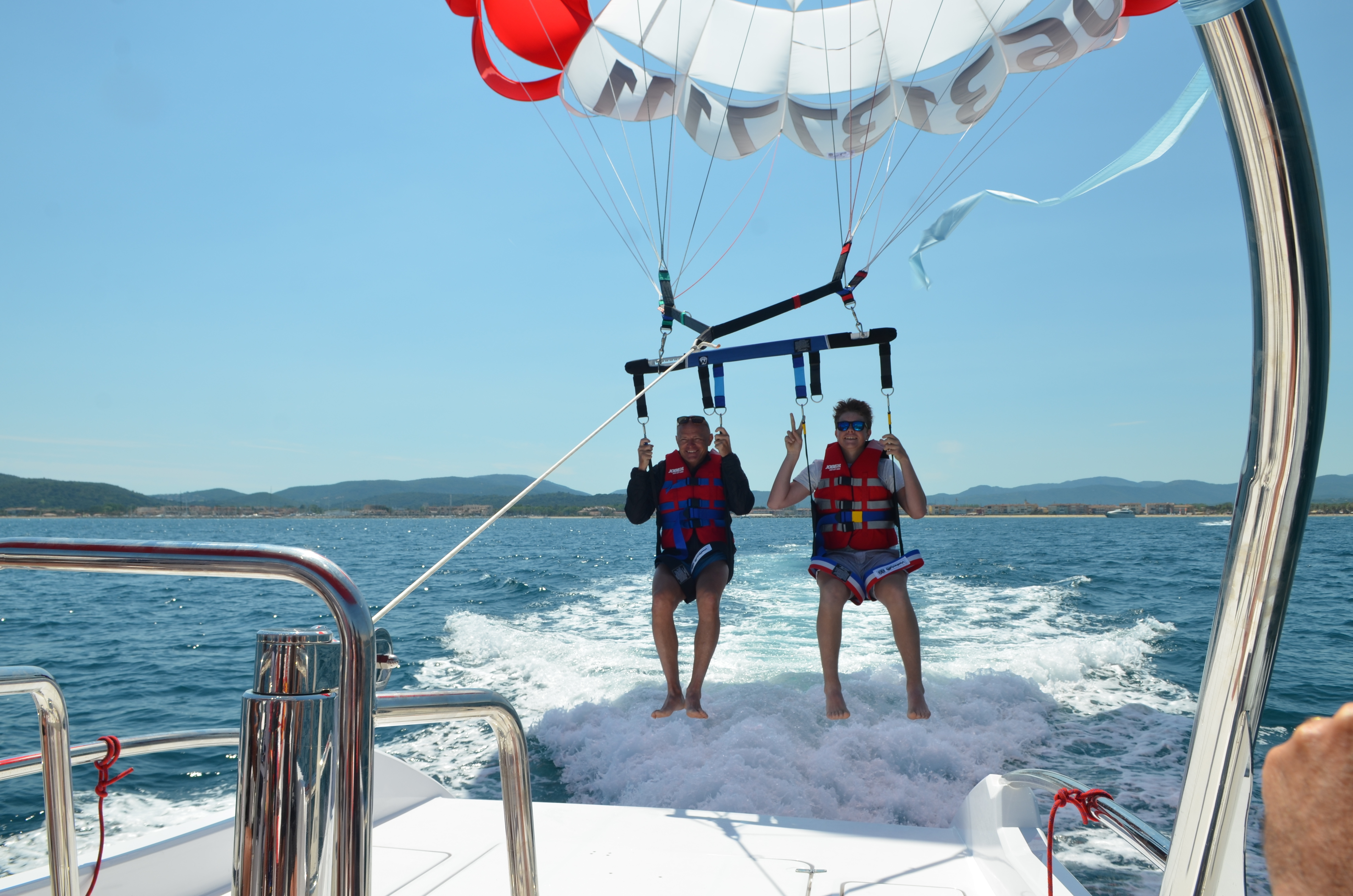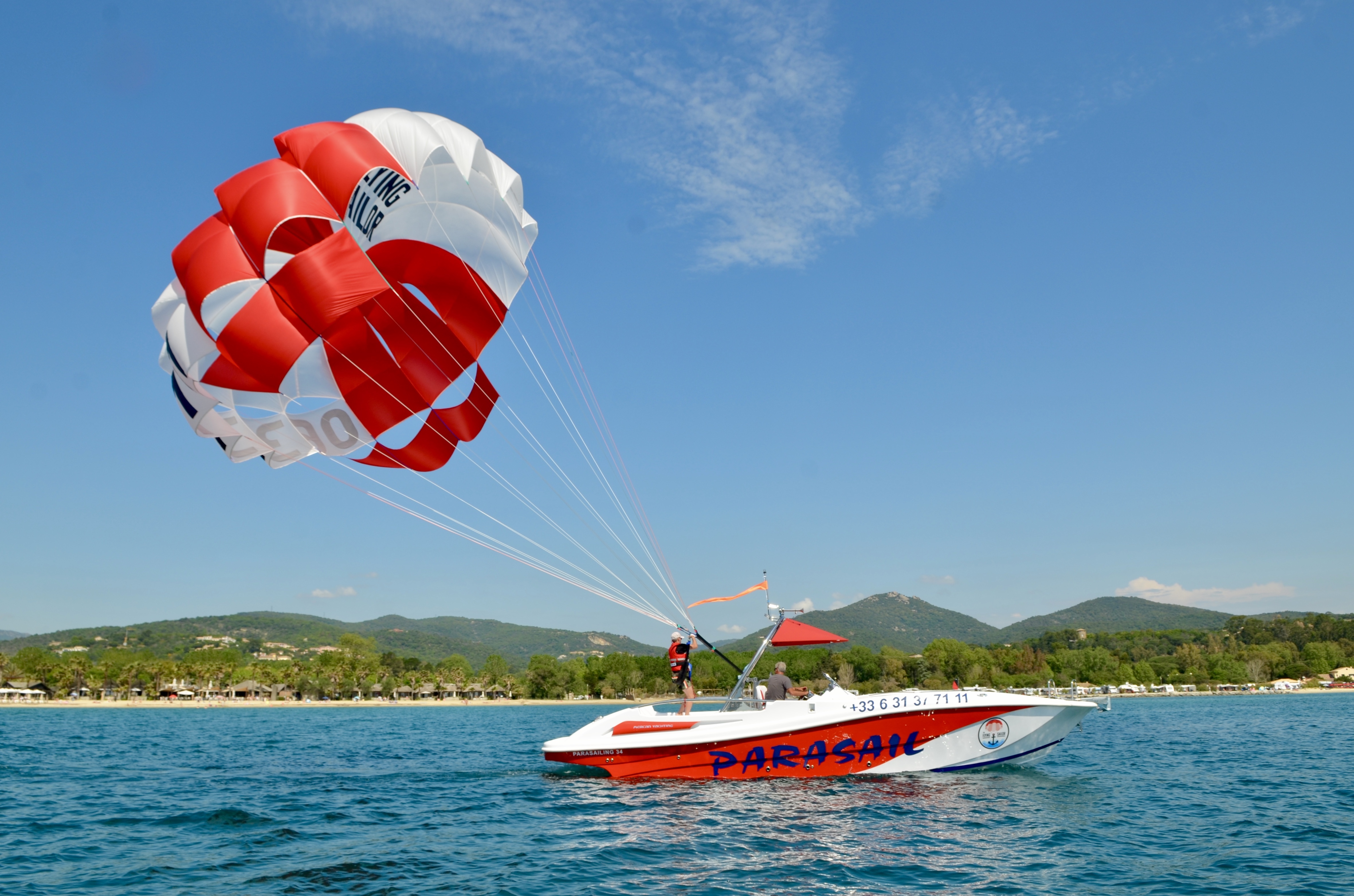 Profitez d'un vol de 10 minutes, et sentez-vous privilégiés car vous serez les seuls dans les airs au départ d’un bateau plateforme dans la baie.Les départs du bateau se font toutes les heures, par petits groupes. PARASAIL 06 possède l’exclusivi