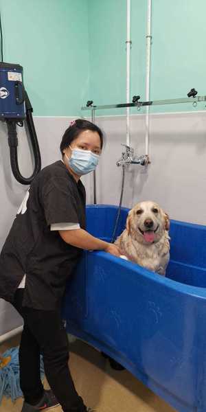 可使用美容房內的浴缸及吹風機, 每15分鐘$25, 最低用量30分鐘已包括洗毛水及毛巾
