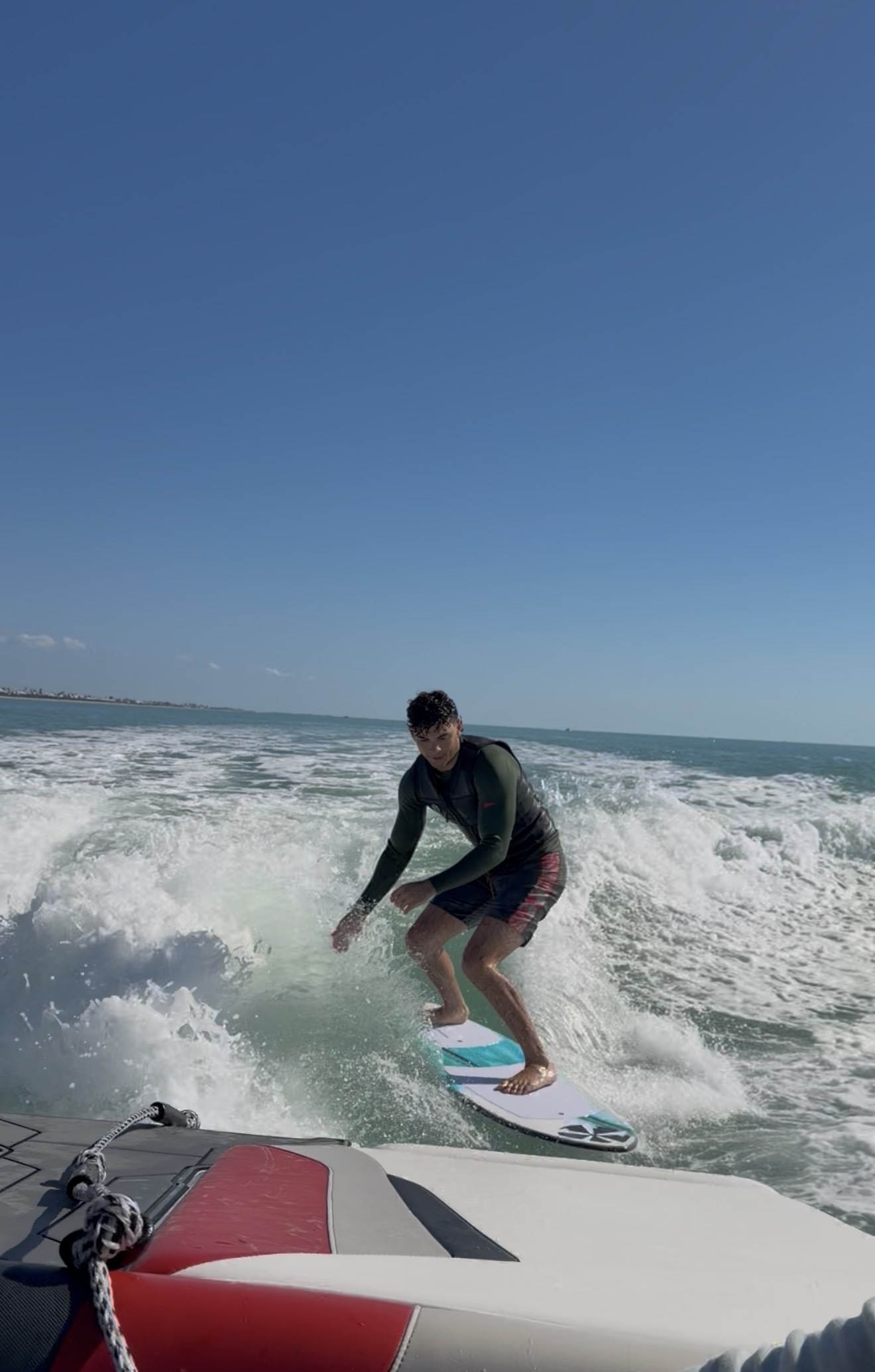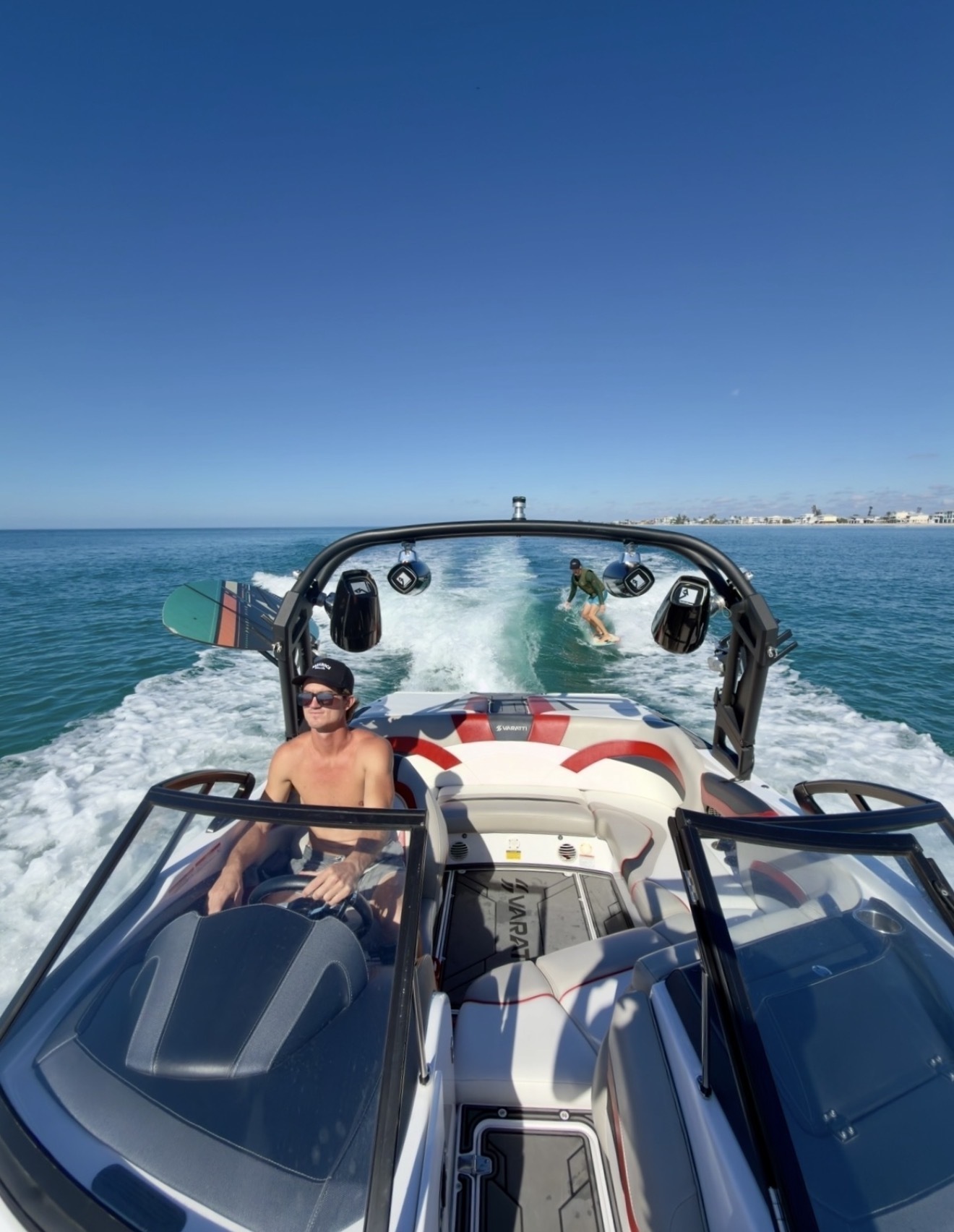 Saraboca Wave Co offers something different. Smaller groups, a premium wakeboat, and a local captain who knows these waters like home. Whether it’s a surf session, a dolphin tour, or a golden sunset cruise, every trip is personal.I’m Captain ET. I grew up here, spent my life on boats and boards, and earned a few skimboarding titles along the way as well as a professional status. When I’m not in the water, I work in the operating room as a surgical technologist. But this has always been the dream.Englewood’s only wakesurf charter, built from decades of riding waves and a lifetime on the Gulf.Galeria