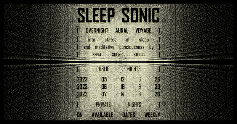 SleepSonicAn overnight aural voyage into states of sleep and meditative consciousness with bed-and-breakfast.An unusual idea? Maybe.A unique experience? Definitely!About SleepSonicA special sleep-in programme by Sepia Sound Studio to discover music’s