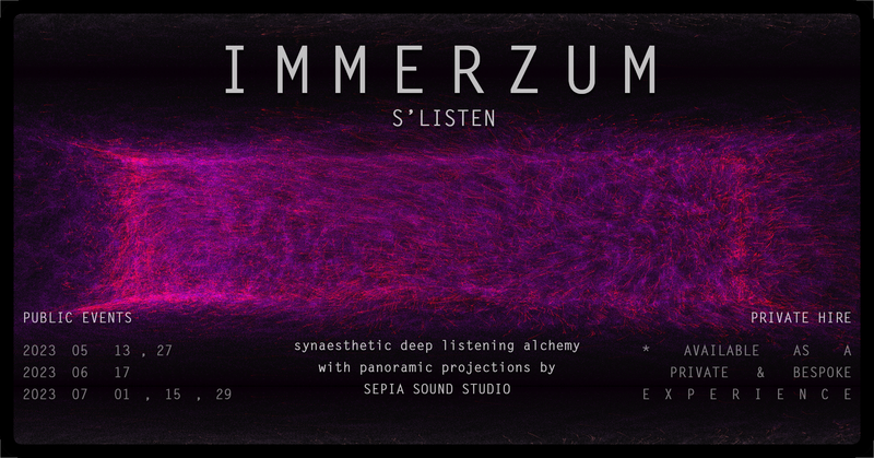 ImmerzumEnter the void. Immerzum is a synaesthetic world of sound and vision. Its atmosphere luminates and resonates your inner path and guides your journey.About ImmerzumImmerzum is a special multisensory environment outside of space and time create