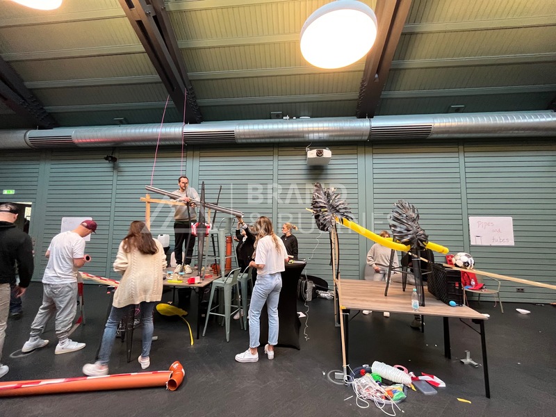 Gemeinsam den Anstoß geben ...BeschreibungBau einer gemeinsamen Impulskettekreativ und kommunikativTeams kooperieren miteinanderjedes Team baut einen StreckenabschnittBaumaterial & Werkzeuge stehen bereitAbschnitte werden verbundenZiel: eine inta