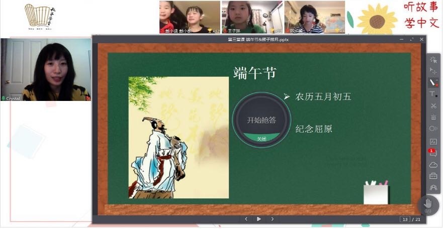 预约一堂与中文老师线上面对面的免费体验课,在30分钟时间里,让孩子在故事和互动中,感受中文学习和中华文化的魅力!作品圖集