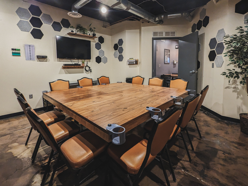 Sun - Thurs only. Must enter coupon code!Seats 18+ (+ varies based on group comfort with close quarters)Multiple Table Configurations (4 tables: can be used separately or combined. Default setup: 1 large, 2 small)Amenities: TV, Bluetoo
