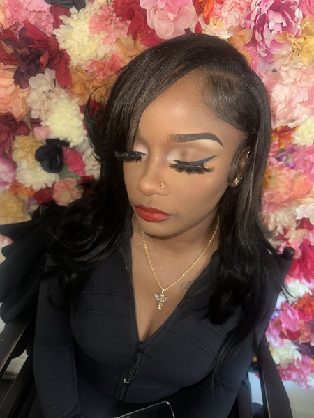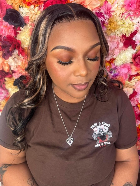 ‼️‼️ PLEASE READ CAREFULLY ‼️‼️Brows must be GROOMED $5 upcharge if arching is necessary! Eyeshadow of your choice! Lashes INCLUDED! (Price does not change if you bring your own) Medium coverage foundation routine Bronzer, Blush A